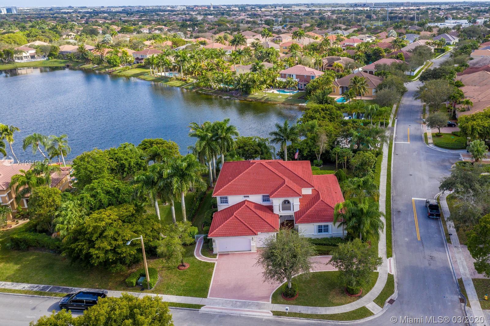 PRICE & PHOTOS IMPROVEMEN. Click on the "VIRTUAL TOUR" link to see more of this Pristine, Luxurious, Stunning, lake front home nestled on an over sized corner lot. This 5 bedrooms, 4 baths 3 car tiled garage shows off its large master bedroom suite with a sitting room, huge bathroom and walk-in closet. The second floor has another master bedroom with private bath and two additional bedrooms with full bathrooms. Accordion shutters are on all windows. The first floor boosts a large private office/5th bedroom option, formal living and dining rooms, eat in kitchen and family room. The living and family rooms lead to the Lanai and extended patio with a beautiful extended view of the lake. Three a/c units, water softener and purifier. Immaculately kept by original owner. Gated community.