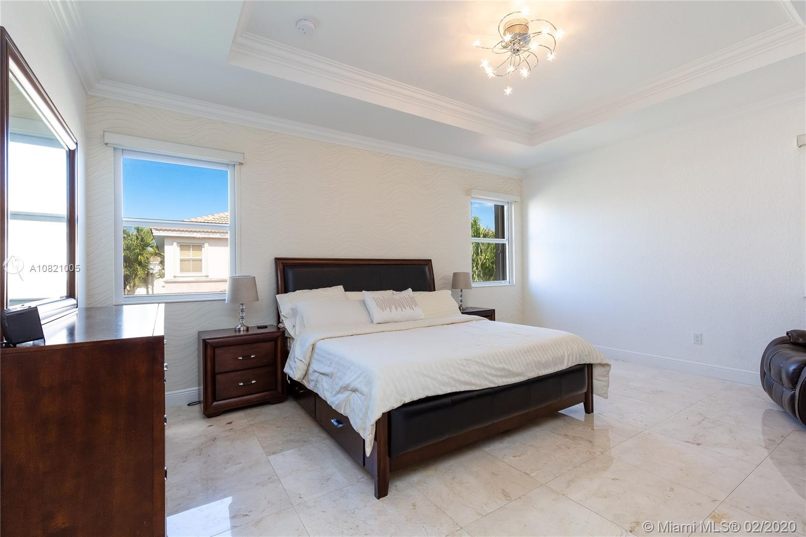 Gorgeous 4 bedrooms and 2.5 bathrooms two story single family in gated community Balmoral Estates in Doral. Open floor plan, beautiful marble flooring throughout the property. Kitchen with stainless steel appliances, wood cabinets and granite counter top. Modern stainless steel glass railing on the stairs. Spacious master suite with oversized walk-in closet, and master bathroom with double sinks. Large patio with pergola. Garage for 2 cars and driveway for 2 additional cars. Accordion hurricane shutters in all windows and sliding doors. Community pool. Walking distance of A+ schools, supermarkets, restaurants, banks and shops. Close to the Miami International Airport, Dolphin Mall, International Mall and the Turnpike. Ready to Move In.