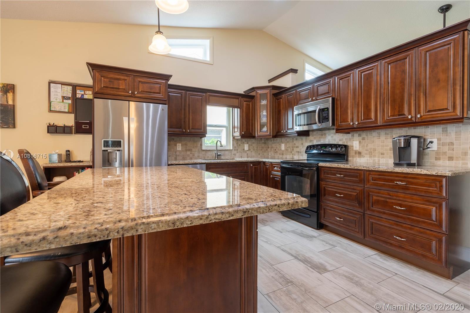 Curb appeal and character! This home in Sunrise is perfect for anyone who loves to entertain. The kitchen has an abundance of wood cabinets, granite countertops and an amazing island to gather around. Kitchen, dining room and bathrooms have tile & the living room and hallway have luxury vinyl (kids, pets, no problem!). The master bedroom has a California closet, your backyard has plenty of greenery and a fenced pool. This home is completely equipped with impact windows, walking distance to school, shops, and restaurants!