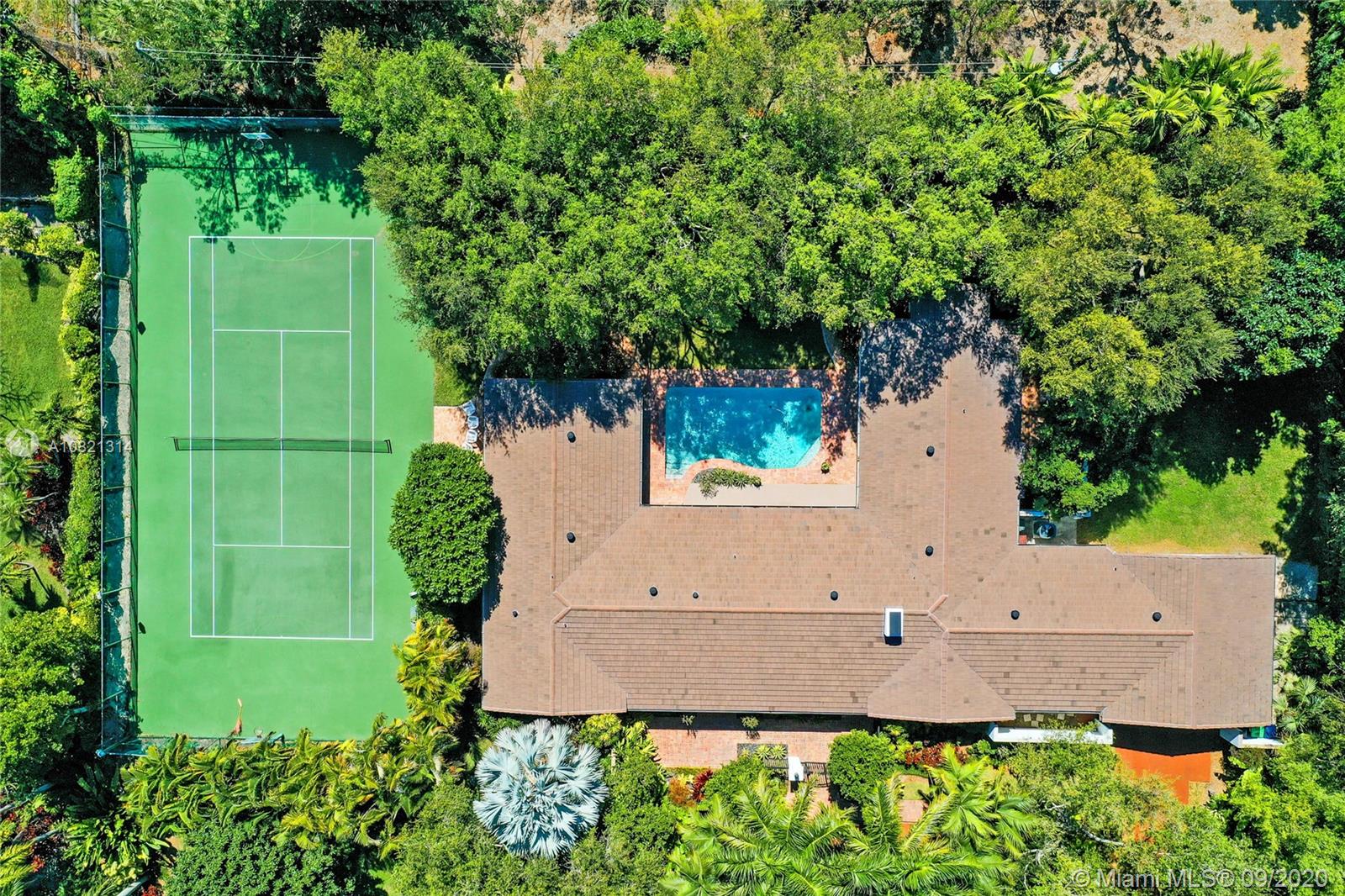 North Pinecrest updated inviting Estate, one level split plan w/5 Bedrooms, 4 full baths 2 half baths. This home is perfect for your large family & entertaining. Updated with impact windows & doors, modern finishes in bathrooms and throughout. Natural light provided by the many doors surrounding the sparkling pool. Landscaping & exterior lighting are impressive and glorious day or night. Estate is finished with a north/south tennis court for everyone's enjoyment. Beautiful professionally landscaped lot.
