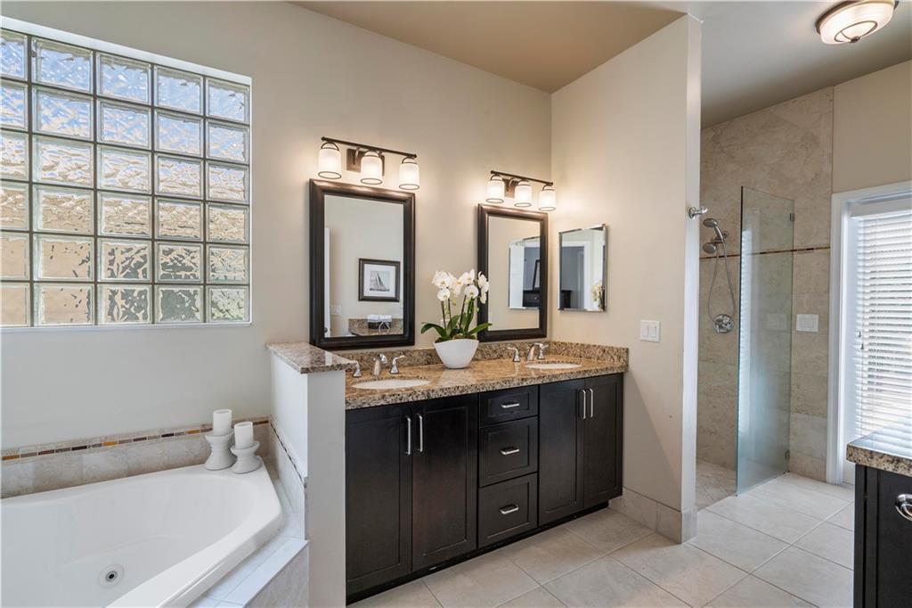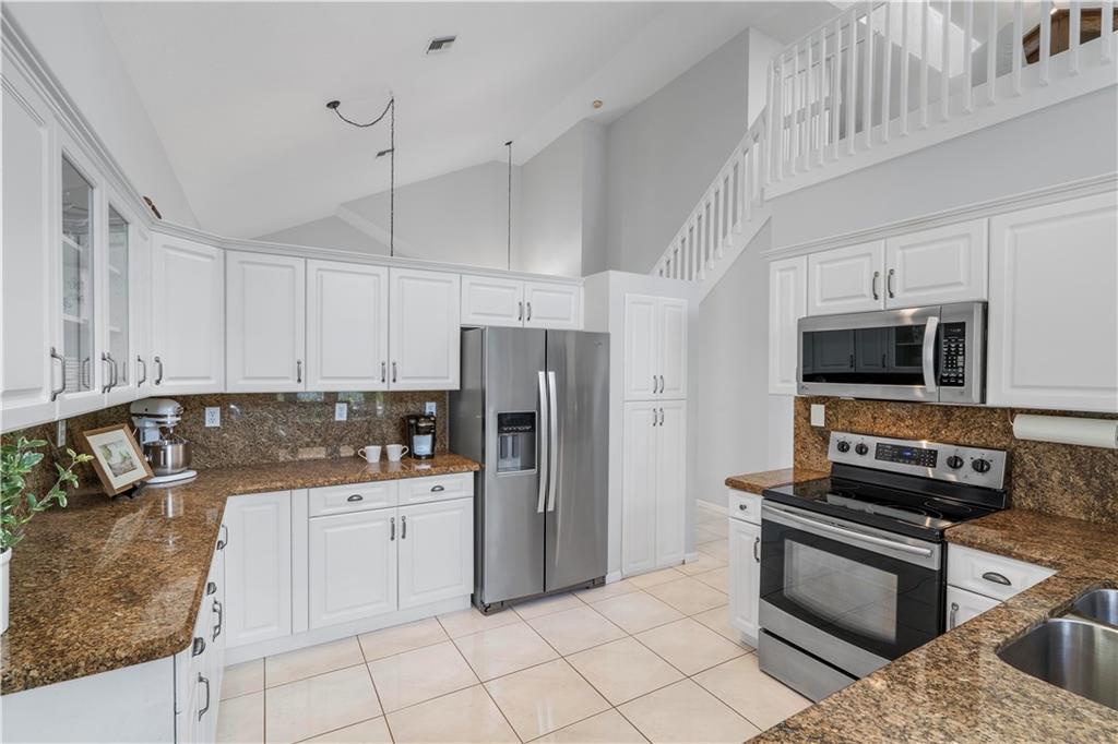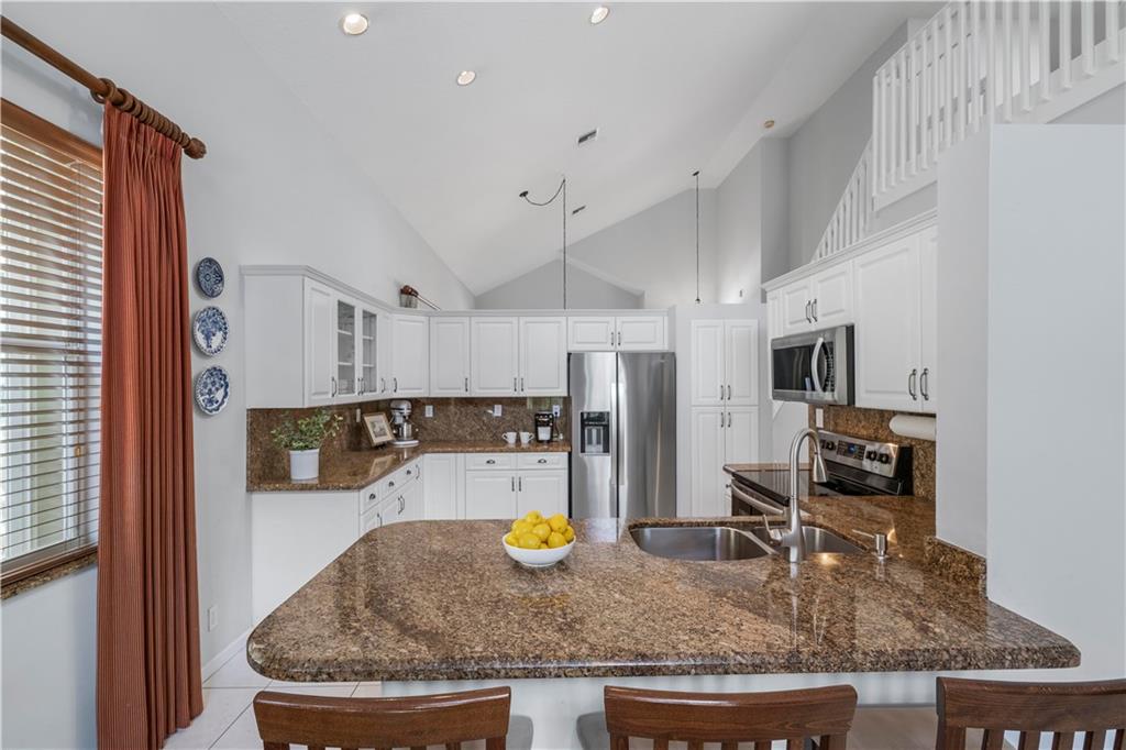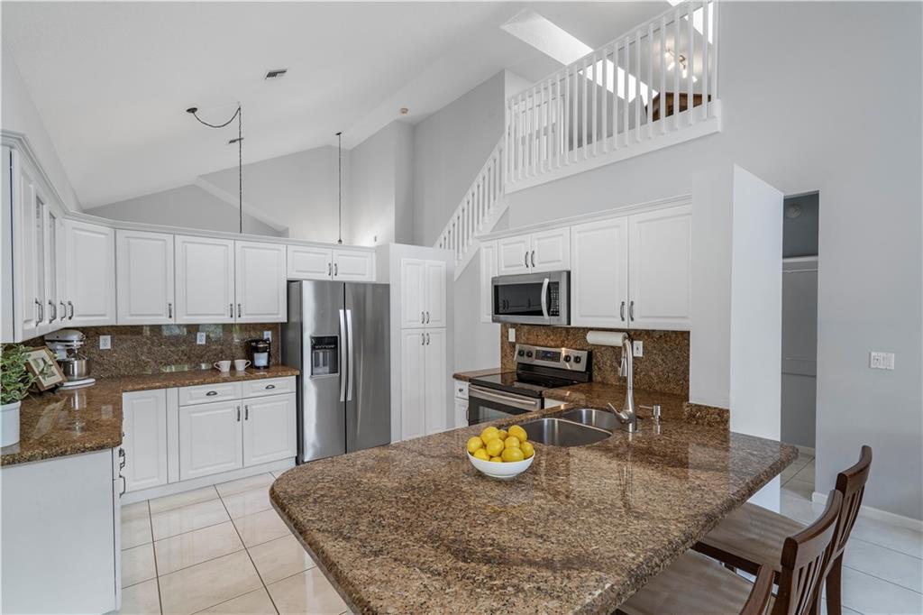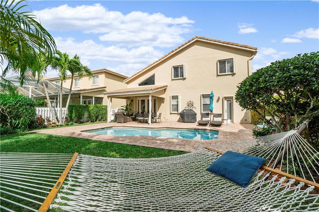 Fall in love with this remodeled 5 bedrooms 3 ½ baths 2 story home, located in gated Sanctuary at Kensington. Lovely bright kitchen completed with white cabinets, stainless steel appliances and granite countertops. Master bedroom is on the first floor with bonus room perfect for a nursery or an office, cabana bath features whirlpool jacuzzi tub and frameless shower. Relax by the pool and enjoy beautiful lush landscaping with private backyard and brick paver patio. Vaulted ceilings, spacious loft upstairs, french doors, accordion shutters throughout. Close to shops, A rated-schools, restaurants and much more. Low HOA.