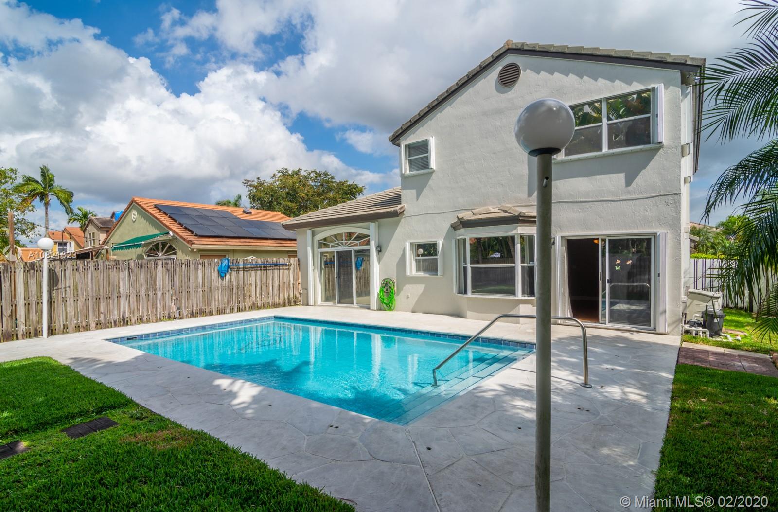 Beautiful 4 bed, 3 bath Pool home with 2 car garage! Featuring an open concept layout with tile flooring throughout main living area and soaring volume ceilings. Upgrades include designer custom kitchen with stainless steel appliances, cooking island and breakfast nook complete with bay windows. Upstairs, the Master suite features huge walk-in closet and bath w/dual sinks & separate soaking tub & shower. Offering outdoor living with an extended patio perfect for BBQ & a large fenced yard, this home is ready for entertaining! Accordion shutters for convenience! 1 full bedroom and bathroom on first floor. Enjoy this beautiful light & bright home in the heart of Pembroke Pines! Great location close to excellent schools, shopping, dining, parks, highways & transportation!