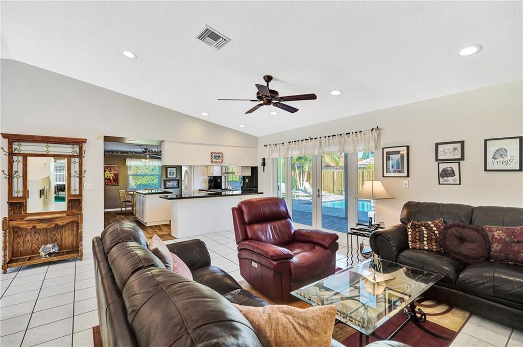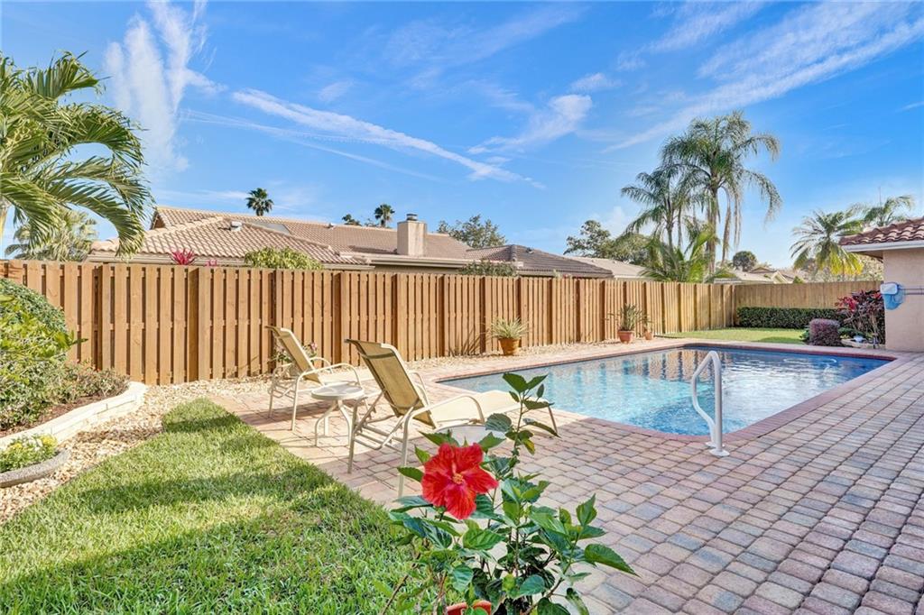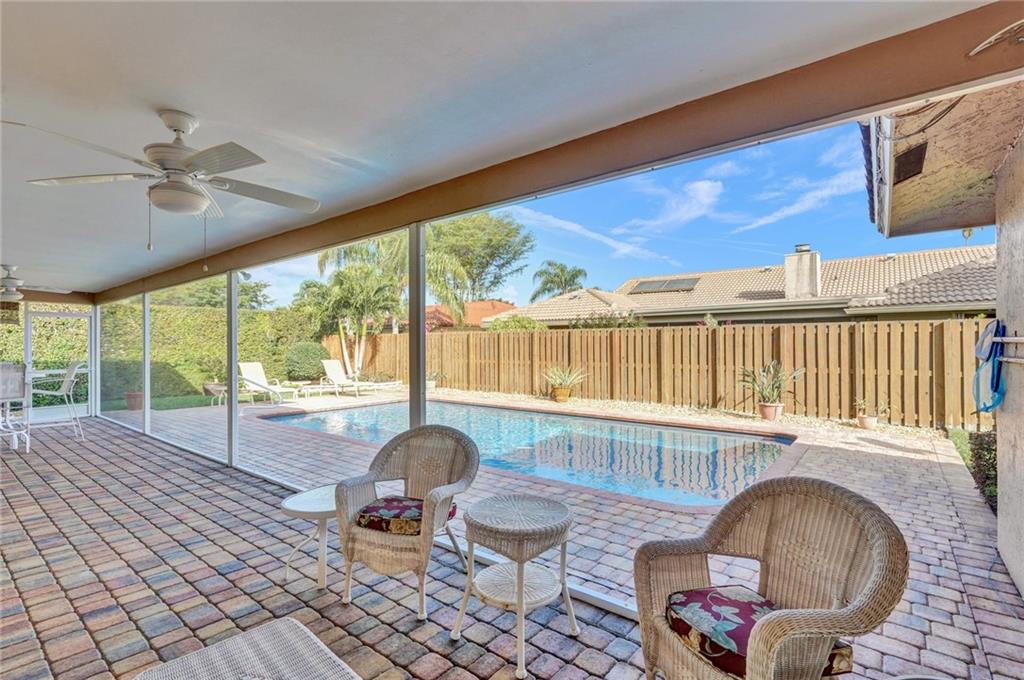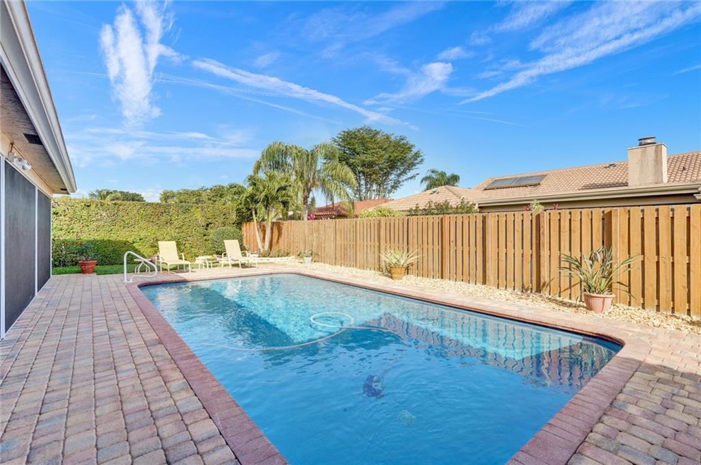 Exceptional value, and casual Coral Springs living at its finest! A beautiful pool view greets you upon entering this immaculately maintained and spacious four bedrooms, two baths home. The open floorplan, screened in patio, and private pool areas are exceptionally well designed for entertaining. The great room and very large kitchen features pool views, designer porcelain tile, a center island, granite counter tops, beautiful white cabinetry, and updated lighting. The spacious master bedroom suite includes updated bathroom cabinetry, a walk in closet, and a beautiful pool view. Other recent improvements include fresh paint inside and out, high-impact windows, doors, and garage door, a Diamond Brite pool finish, renovated guest bathroom, and exquisite landscaping. Come enjoy!