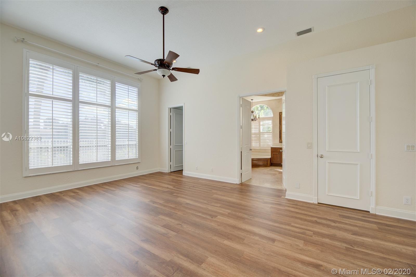 Large two story lakefront pool home with courtyard entrance in gated community. Master bedroom and guest house on first level. High ceilings, tile and wood floors thru out. Top of the line appliances and a totally upgraded garage system with lots of storage. Walk to parks, and a short drive to A rated schools and shopping. Home has a total water purification system and upgraded security cameras.