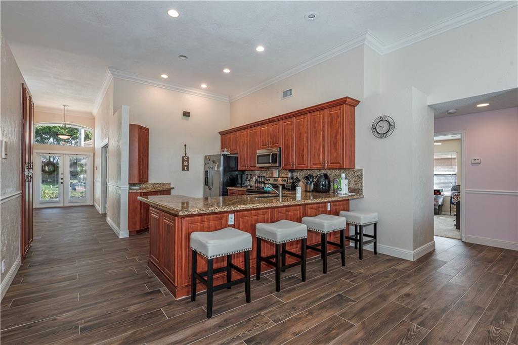 great updated single family home, features unique high vaulted ceilings with new crown molding and base boards, 5 bedrooms with one being used as a office, new tiled floors, granite kitchen, upgraded granite vanities in both bathrooms. brand new 5 tone ac installed 6 months ago. new front load washer and dryer, SS steel appliances.property has a fenced in pool, lake view from backyard