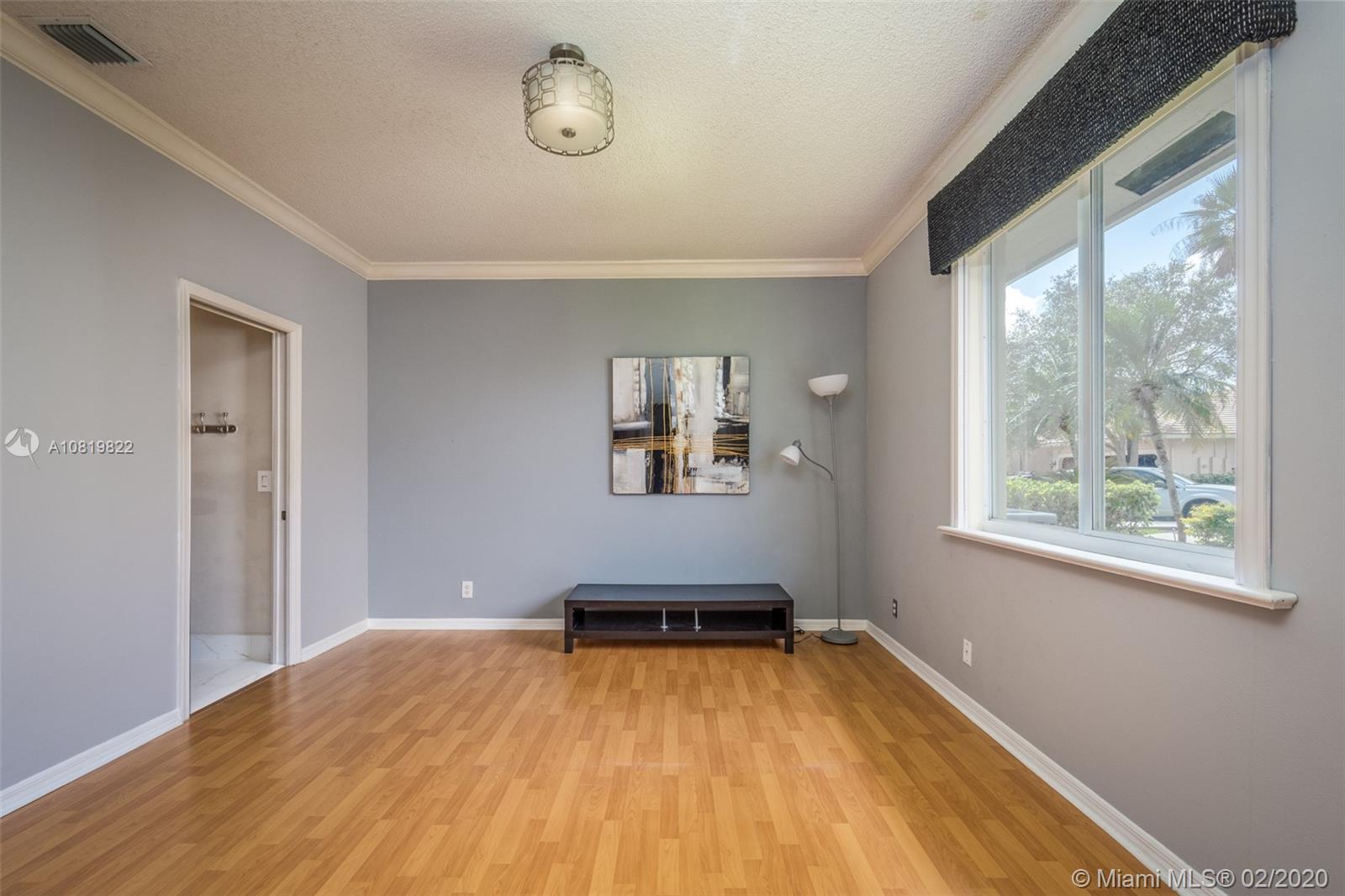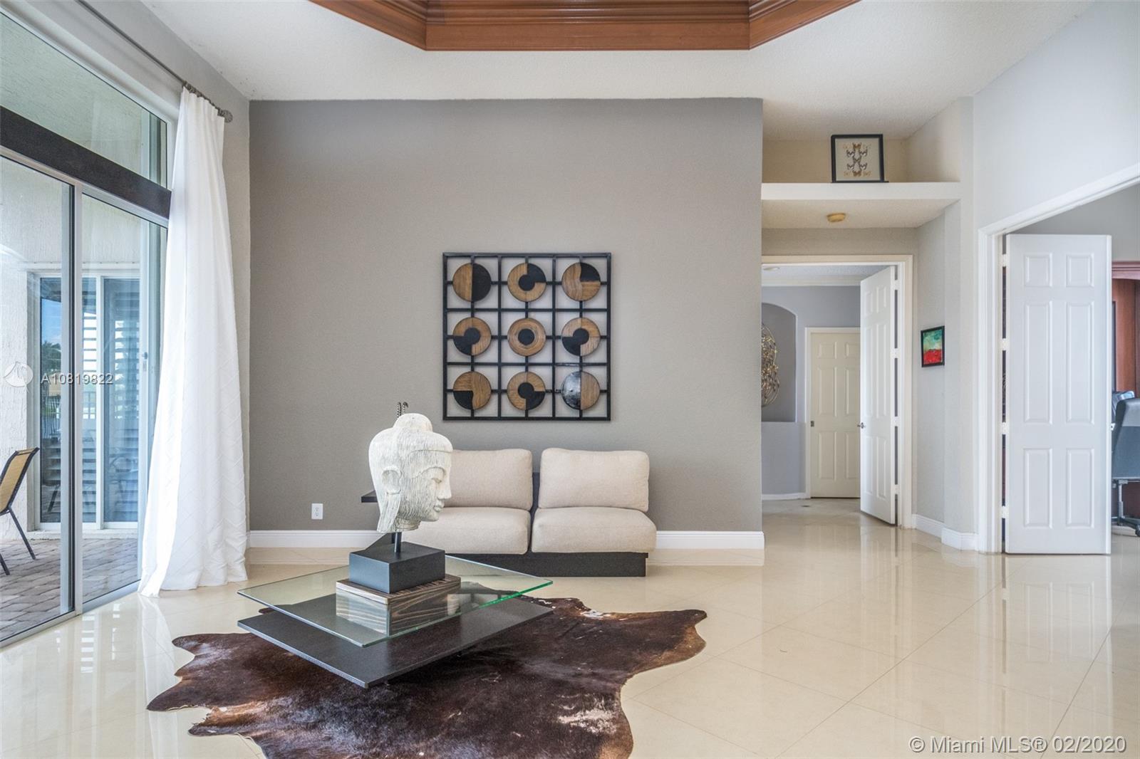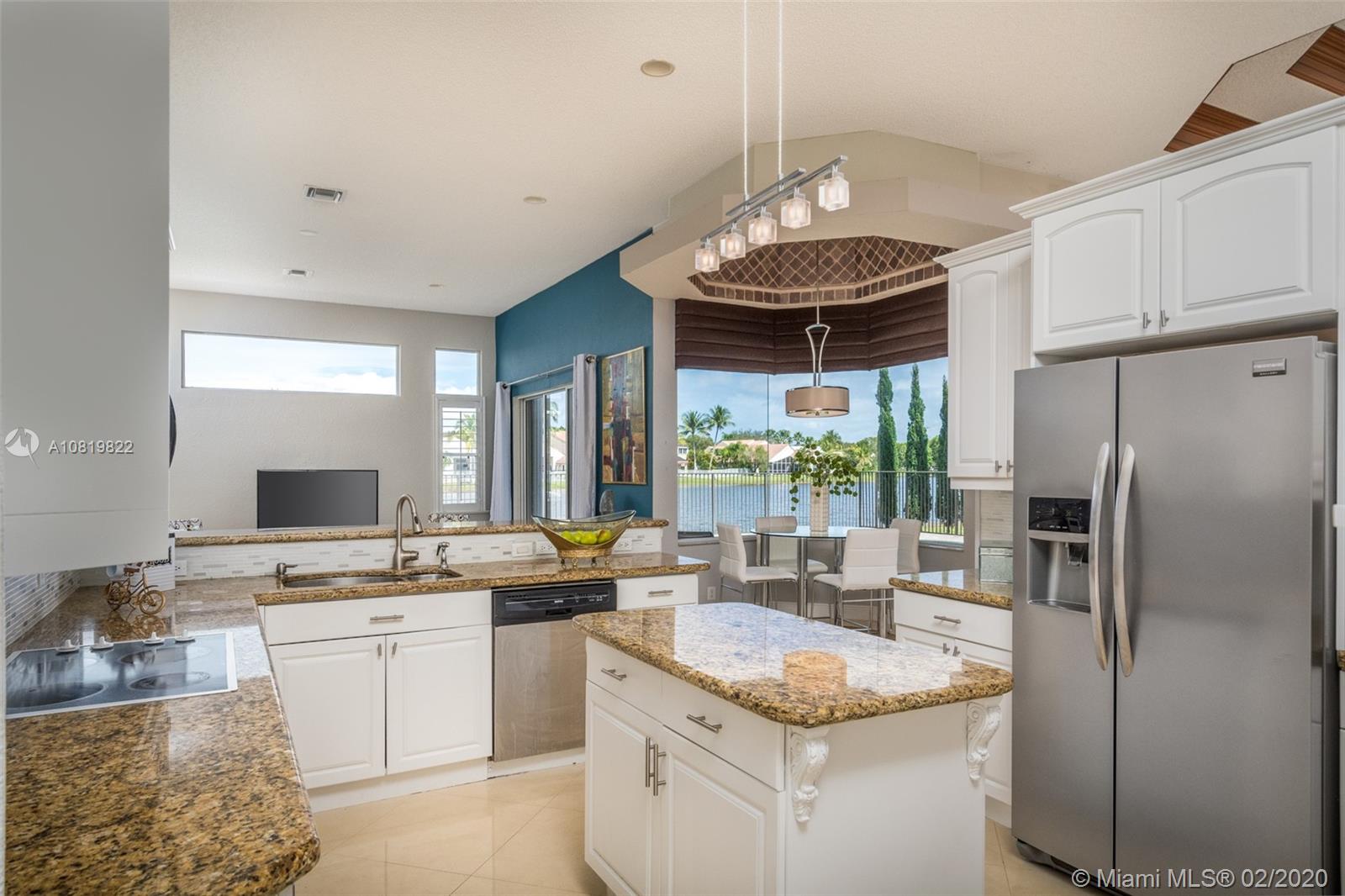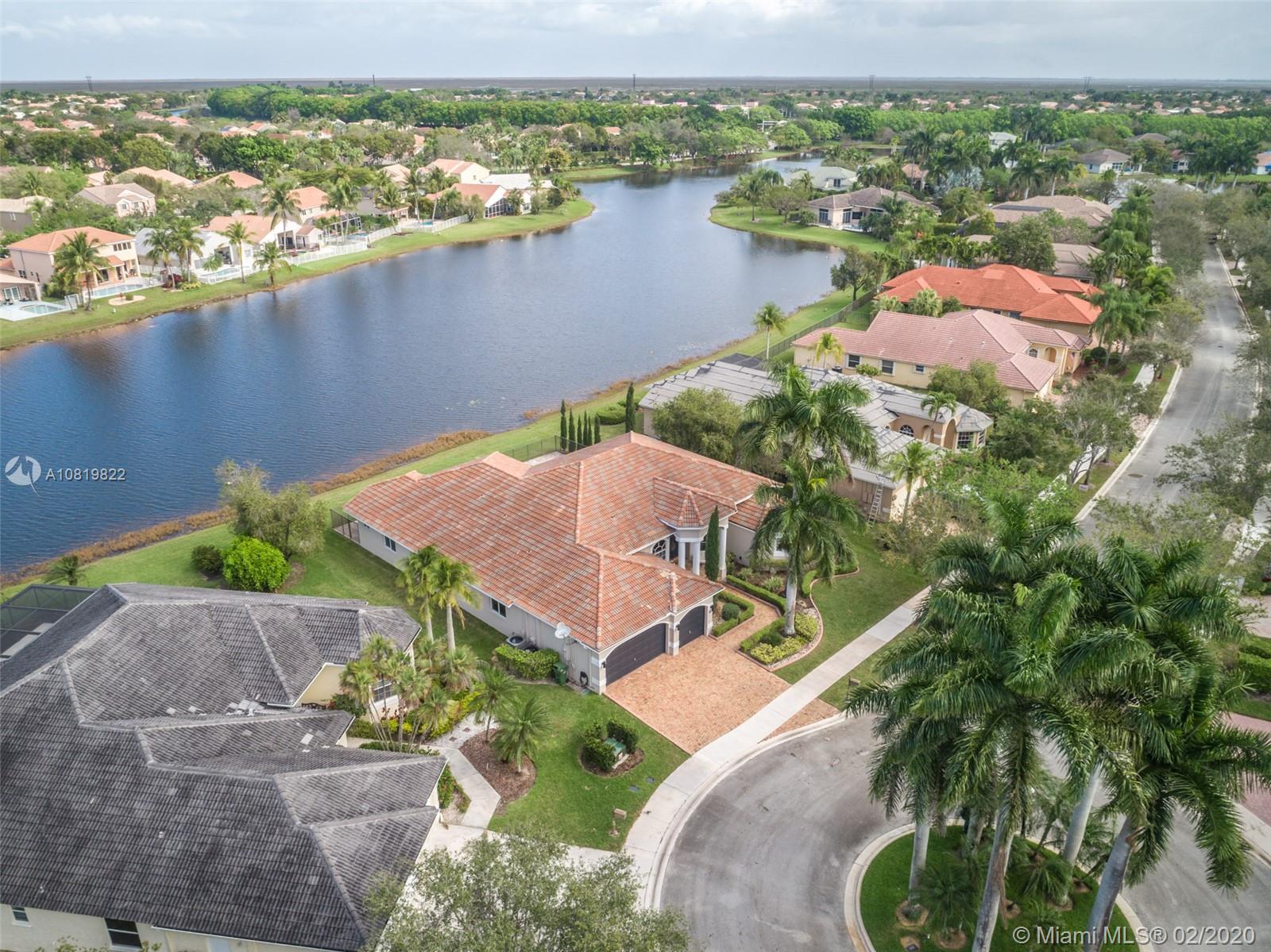 Check out our new 3D tour. Tucked on a quiet cul de sac street this custom built home features chicago brick driveway and walkway. This four bedroom plus office one story shows light and bright. Enjoy long lake views from expansive paver patio, remodeled pool with large overhang fully fenced yard. Neutral porcelain tile in living areas with soaring ceilings. Freshly painted interior. Enjoy contemporary white kitchen, granite countertops, center island and Stainless Steel appliances. Grand master bedroom with windows on water and pool. Master bath with roman tub, dual sinks and shower. Extensive crown molding. plantation shutters. Cabana bath and so much more.