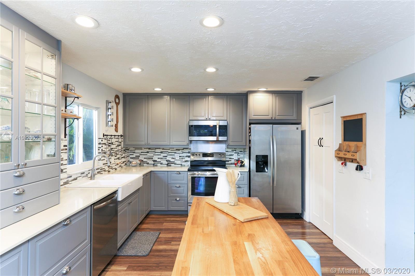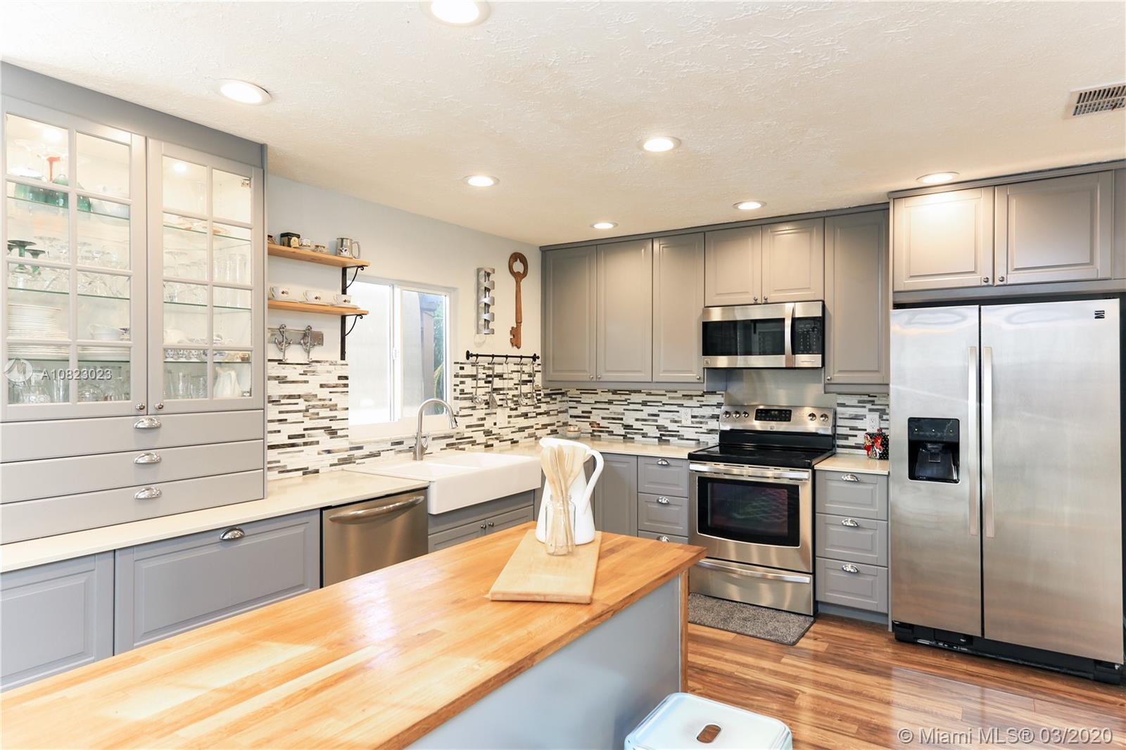Single Family Home. large square footage. one of the biggest house's in the street plus Oversized Garage. 2 Large Bedrooms with walk in closets, 2 updated bathrooms and Large guest bedroom/Den with Barn sliding doors which gives the house a potential of 3 bedrooms. Kitchen was remodeled in 2016 with Quartz Counter tops, Duck Grey Cabinetry with hidden drawers and quiet close drawers, Butchers block Island and stainless steel appliances. water resistant acacia wood laminate throughout!All windows and doors are Hurricane windows replaced in 2016. Hurricane standard stone coated Metal roof, Emergency home generator Hook up for generator, Over sized Drive with stamped concrete can hold 6 cars. Termite inspected and treated Under warranty.