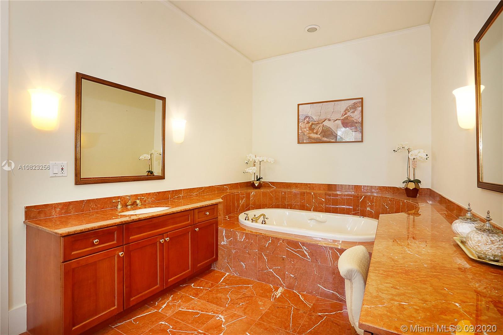 Custom-built waterfront home ideally located in the guard gated community of Hammock Oaks. Situated on a 40,000-SF lot with gorgeous views of protected Matheson Hammock, & only 1 bridge to the bay. Beautifully designed with grand spaces, 12’ ceilings, living room with fireplace, dining room, eat-in kitchen, romantic courtyard, & great room running the entire back of the house facing the water views. This majestic estate offers 6 spacious bedrooms, & 5.5-baths, including a guest bed downstairs, 4 bedrooms upstairs, & generous master suite with water views, sitting room with fireplace, private balcony, large walk-in closet, & bonus gym off master that can be turned into 7th bedroom. Outside, 36’ dock, tennis court, pool, cabana bath, covered terrace, long private driveway & 2-car garage.