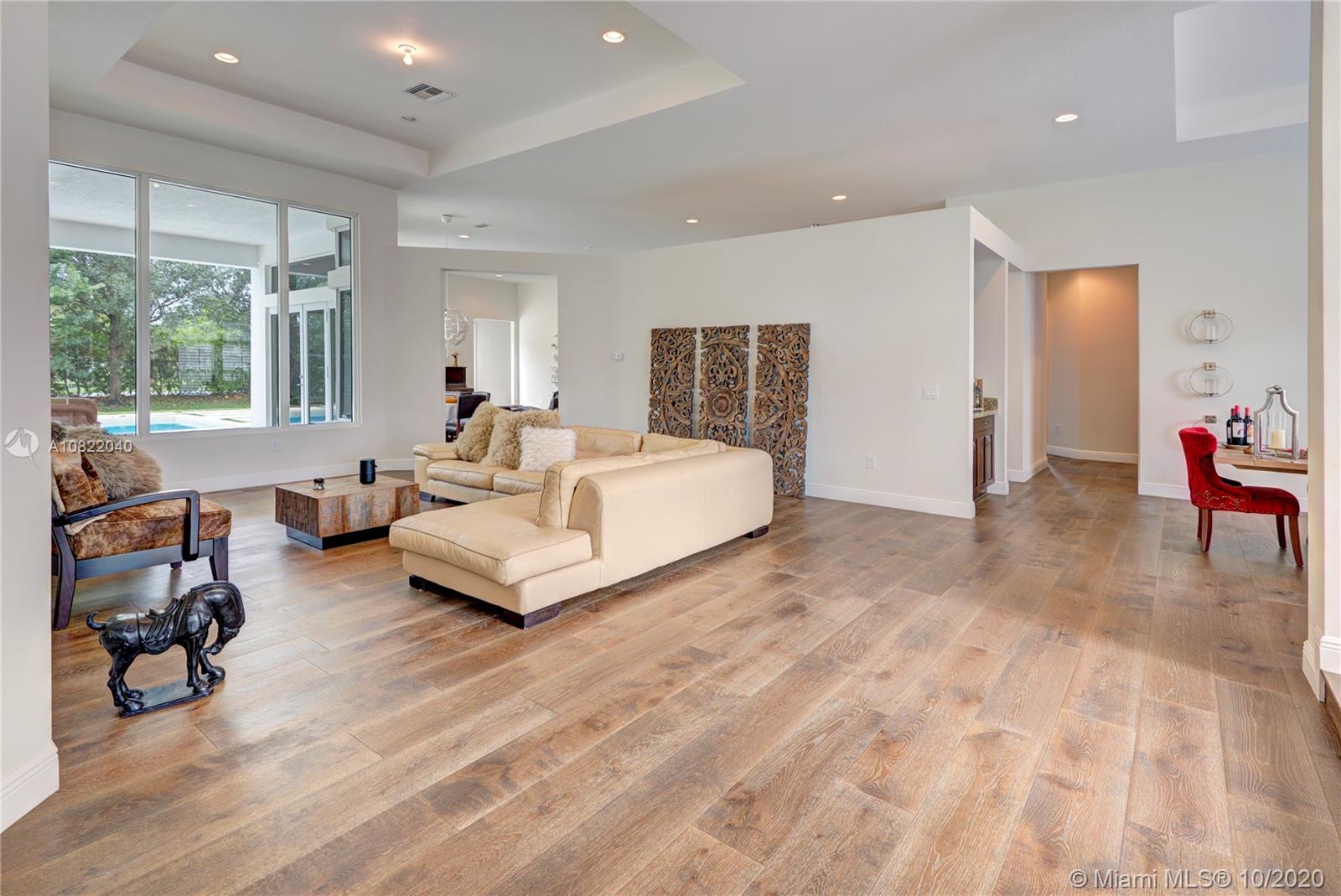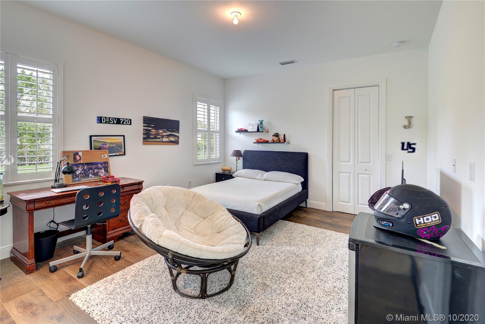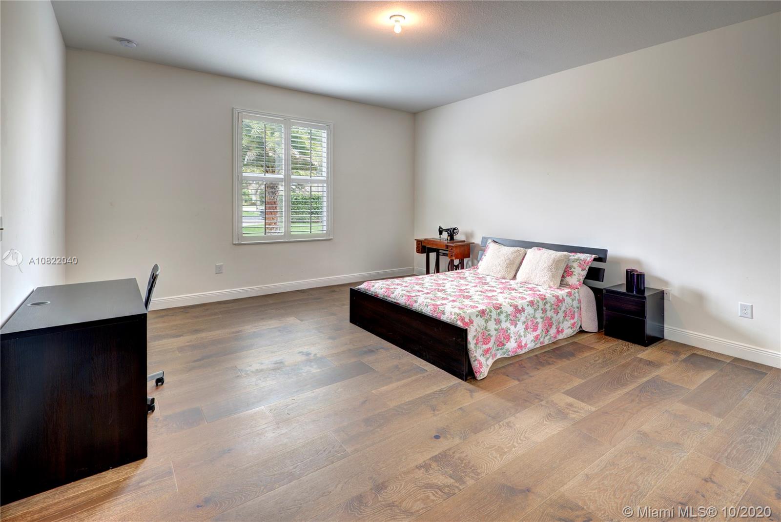 SPECTACULAR 5 BEDROOM 5.5 BATH + PLAYROOM or GYM + OFFICE Built 2016. Indulge yourself in this single-story gem situated on a builder’s acre, private fenced and gated in the sought after, exclusive banquet community of Woodbridge Ranches. this 5,000+ square-foot FEATURING WATER RESISTANT NATURAL WOOD FLOORING, PLANTATION SHUTTERS, IMPACT WINDOWS AND DOORS, MODERN WHITE KITCHEN WITH QUARTZ COUNTER TOPS AND ISLAND, STAINLESS STEEL APPLIANCES, SINGLE BASIN FARMHOUSE SINK. HUGE MASTER CLOSETS, ALL LARGE EN-SUITE BEDROOMS. (2) A/C UNITS, W/H, Tankless Water Heater. SALT WATER POOL AND SYNTHETIC GRASS MESH IN PAVER POOL DECK AND SO MUCH MORE. THIS EXCLUSIVE DAVIE NEIGHBORHOOD CLOSE TO CLEVELAND CLINIC, GREAT SCHOOLS, SHOPPING AND SHORT DISTANCE TO MAJOR HGWYS. The garage accommodates 3 cars.