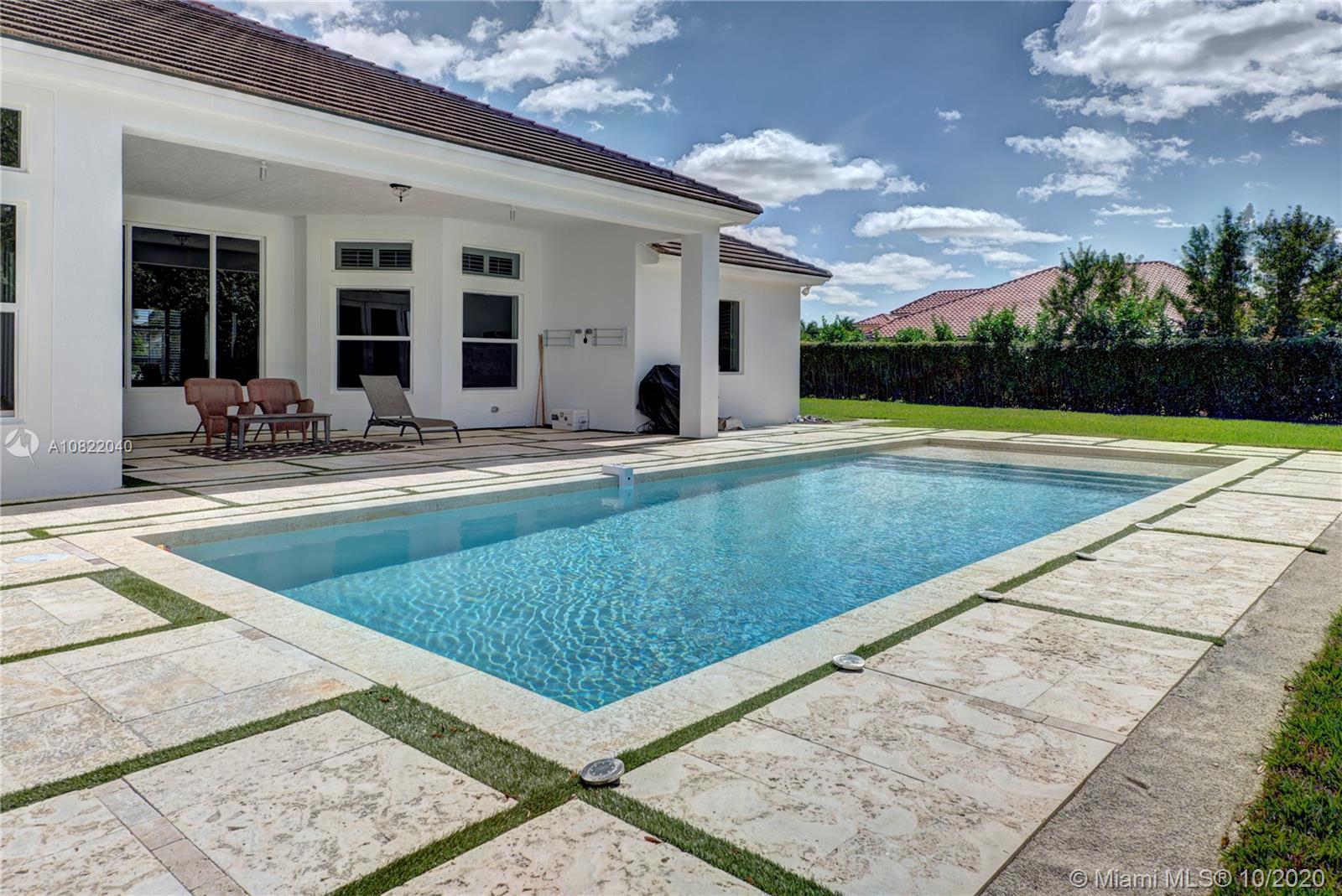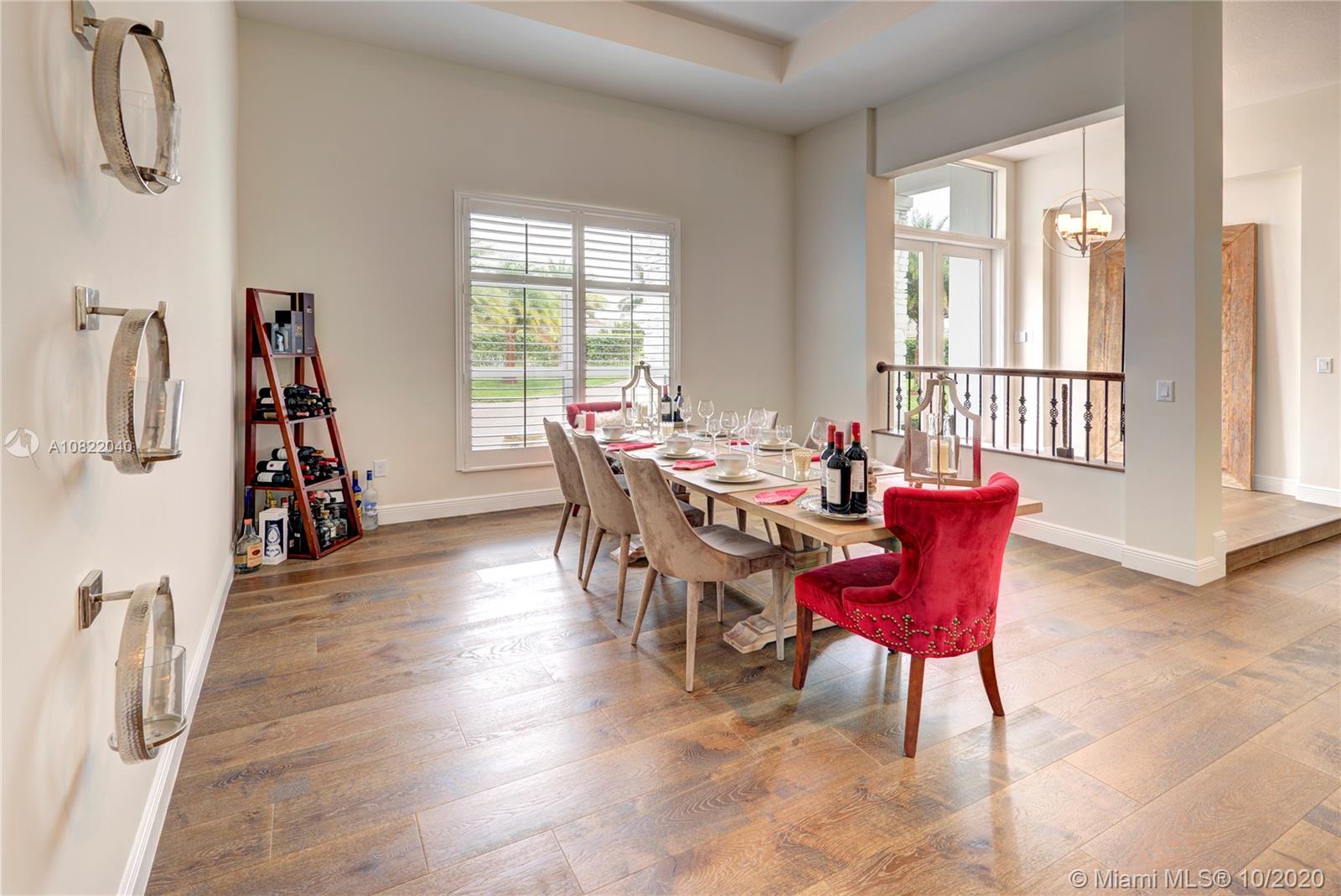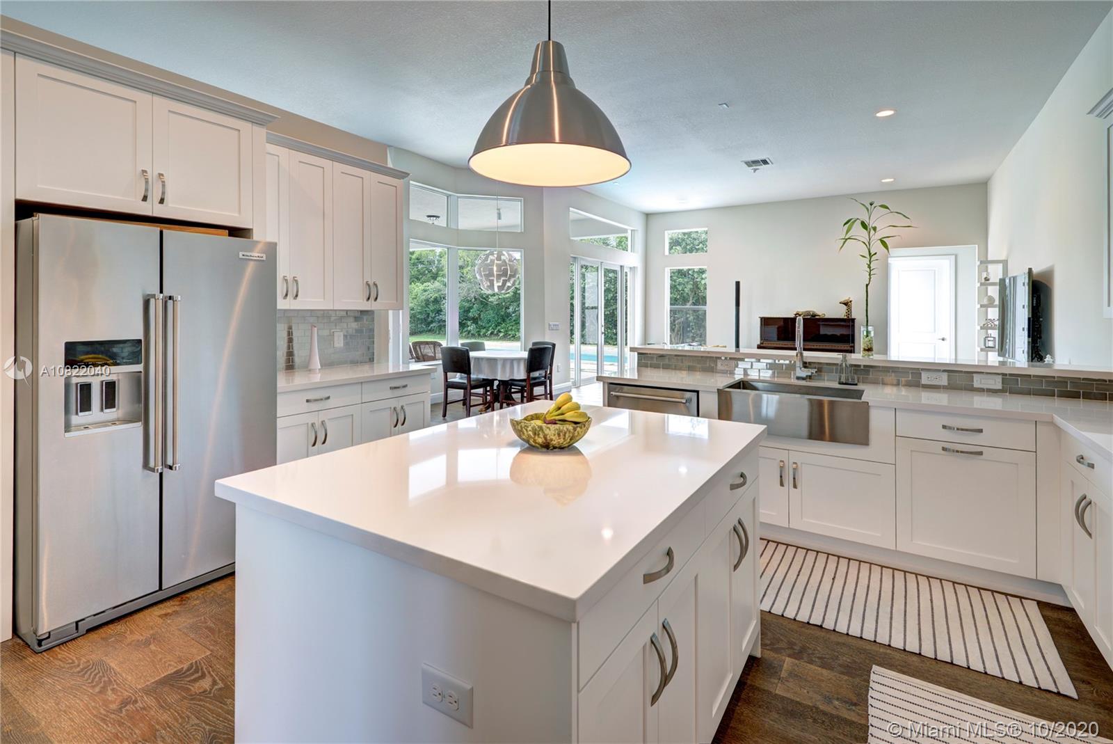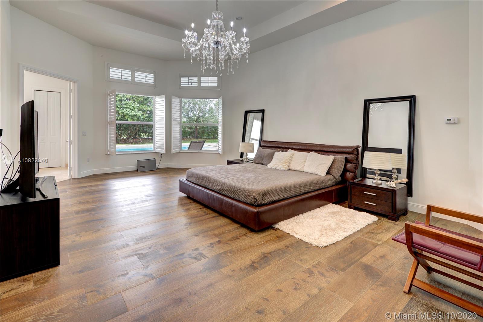 SPECTACULAR 5 BEDROOM 5.5 BATH + PLAYROOM or GYM + OFFICE Built 2016. Indulge yourself in this single-story gem situated on a builder’s acre, private fenced and gated in the sought after, exclusive banquet community of Woodbridge Ranches. this 5,000+ square-foot FEATURING WATER RESISTANT NATURAL WOOD FLOORING, PLANTATION SHUTTERS, IMPACT WINDOWS AND DOORS, MODERN WHITE KITCHEN WITH QUARTZ COUNTER TOPS AND ISLAND, STAINLESS STEEL APPLIANCES, SINGLE BASIN FARMHOUSE SINK. HUGE MASTER CLOSETS, ALL LARGE EN-SUITE BEDROOMS. (2) A/C UNITS, W/H, Tankless Water Heater. SALT WATER POOL AND SYNTHETIC GRASS MESH IN PAVER POOL DECK AND SO MUCH MORE. THIS EXCLUSIVE DAVIE NEIGHBORHOOD CLOSE TO CLEVELAND CLINIC, GREAT SCHOOLS, SHOPPING AND SHORT DISTANCE TO MAJOR HGWYS. The garage accommodates 3 cars.