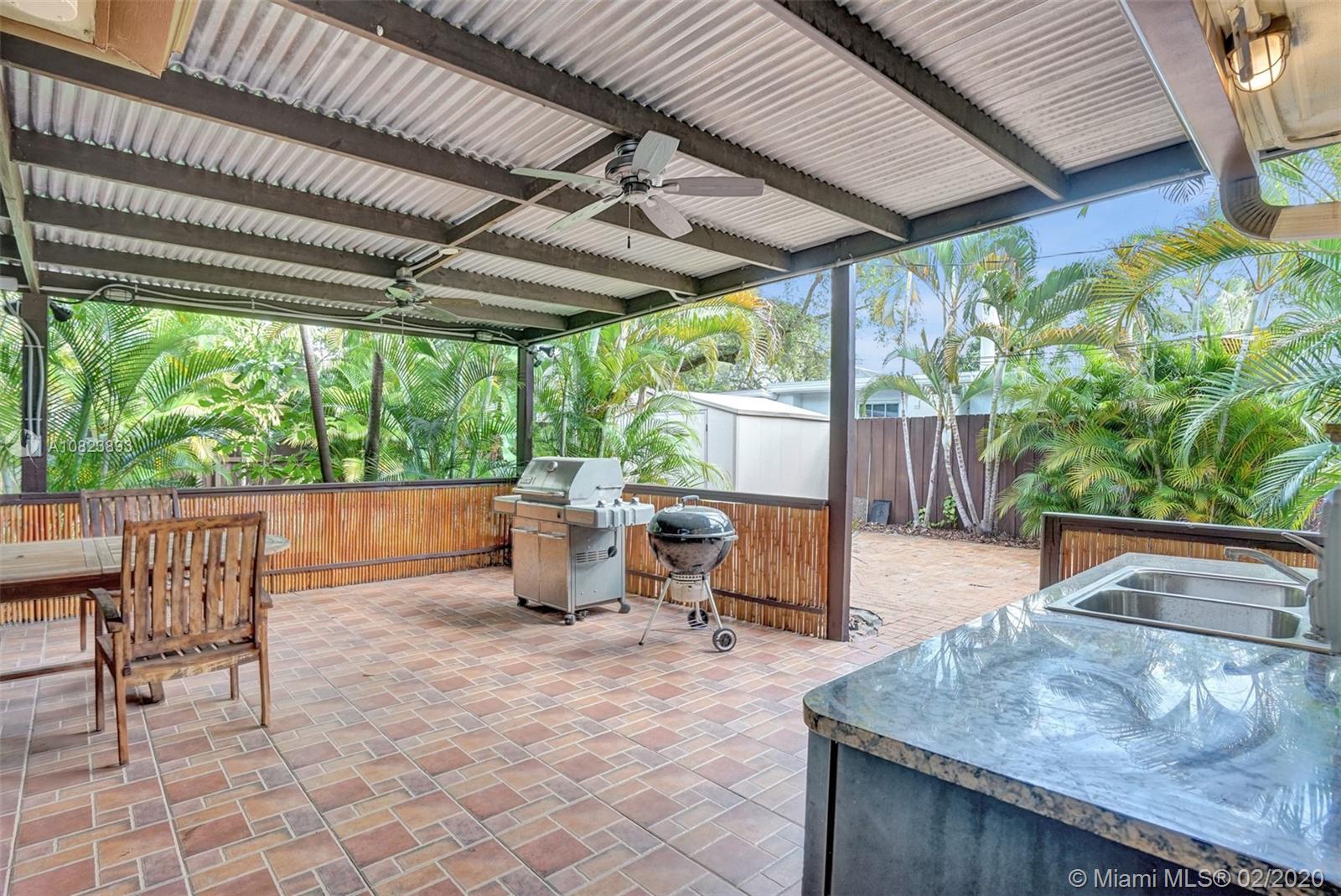 Tropical, spacious, backyard oasis with extra-large covered patio makes outdoor living & entertaining delightfully special. This cozy home in Tarpon River features 2 bedrooms, 1 bathroom + converted space for an office or another room. New A/C (compressor & air handler), new water heater. Freshly painted inside & out, storage shed, special R30 insulation in attic, hurricane shutters, artificial turf in backyard, a 2nd refrigerator, wood fence & gate, & a carport with private driveway all included. Separate closet for washer & dryer. Close to all downtown activities, beaches, airport & highway. Highly desirable location also makes this a great investment home. Buyer to verify square footage.