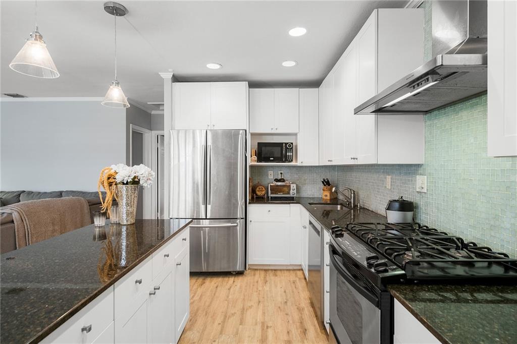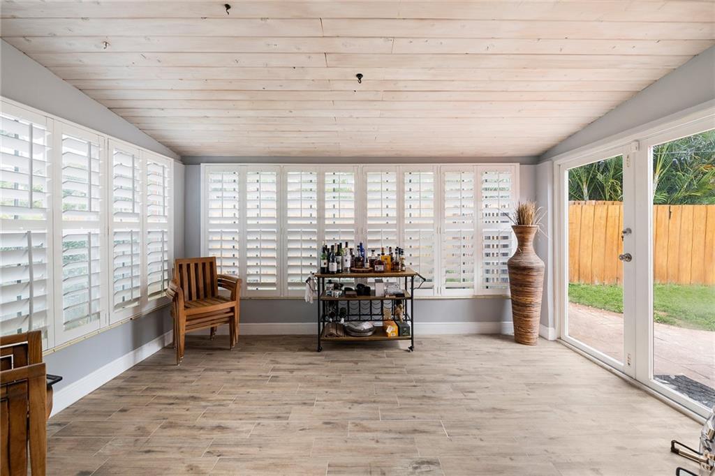 Beautifully updated home on one of the best streets in the sought after Poinsettia Heights neighborhood. Light & Bright open floor plan & Kitchen. Updated Kitchen w/Granite Counters & Island. SS Appliances (gas stove). Recessed Lighting and glass back splash. Florida / Dining room is surrounded by windows on 3 sides with white Plantation shutter and French doors leading to the back yard!. New porcelain tile through-out!. Originally 3 Bedrooms, Now a 2/2. Two bedrooms have been opened up to create a wonderful master En-suite with French doors leading out to the backyard. The master has a large area set up to accommodate a spacious home office, or private sitting area. Dramatic Spa style Master, soaking tub & separate shower...Paver Driveway/Patio/Fenced Yard/Shed/Hurricane Shutters