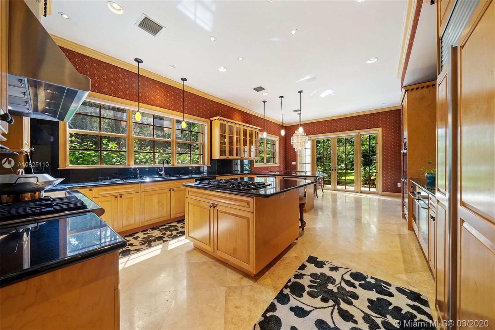 Stunning 2-story estate on one of the most tranquil streets in Pinecrest! This gated home features 5 bdrms, 5.5 baths. Formal living & dining. Volume ceilings, plantation shutters, crown molding, marble floors. Dream custom kitchen w/ 4 ovens, 2 gas ranges, eat in/ snack counter, breakfast area. Two bdrms downstairs, one w/ separate entrance. 3 additional en-suite bdrms upstairs incl. master suite w/ sitting area, two walk in closets, luxurious bath & adjacent office. Additional upstairs family rm, perfect play rm/game rm. Breathtaking backyard w/ large covered patio, is a tropical paradise. Numerous fruit trees, native Florida plantings adorn the property. 3 car garage, heated pool, surround sound, hurricane shutters. Close proximity to Pinecrest's best schools, Pinecrest Elementary.