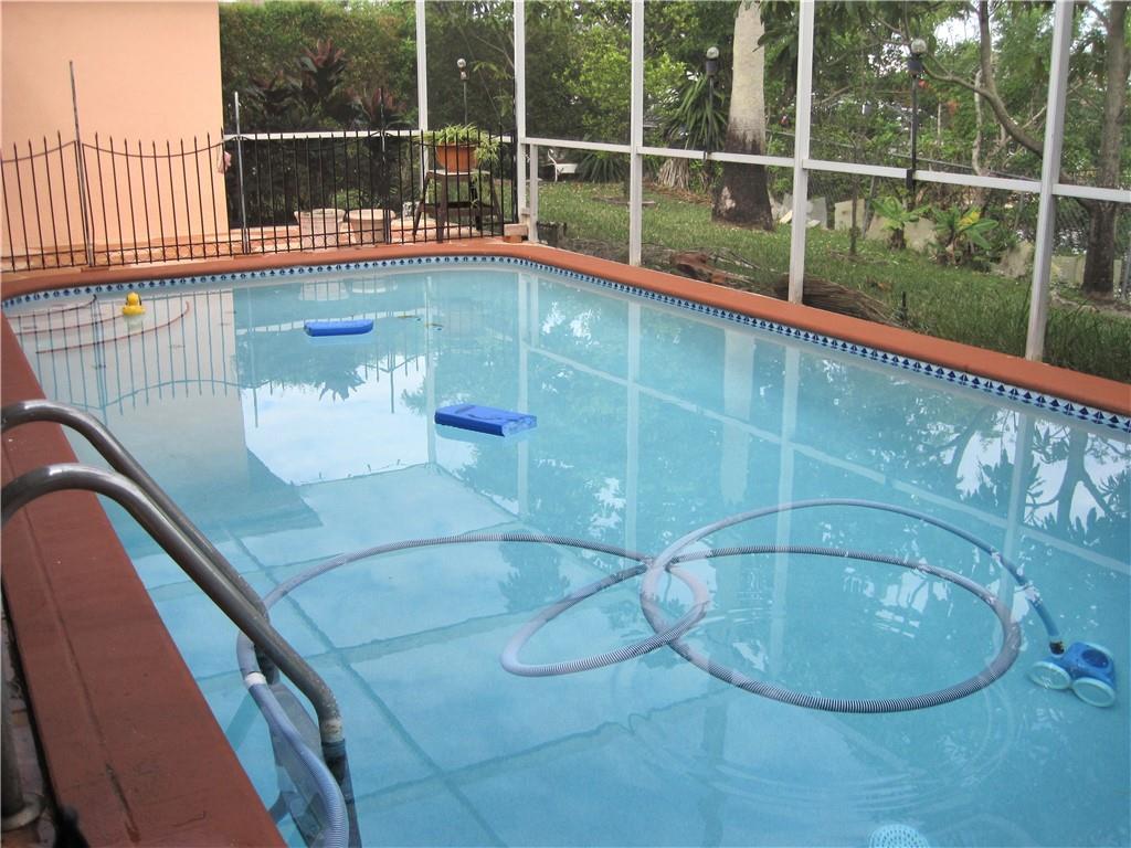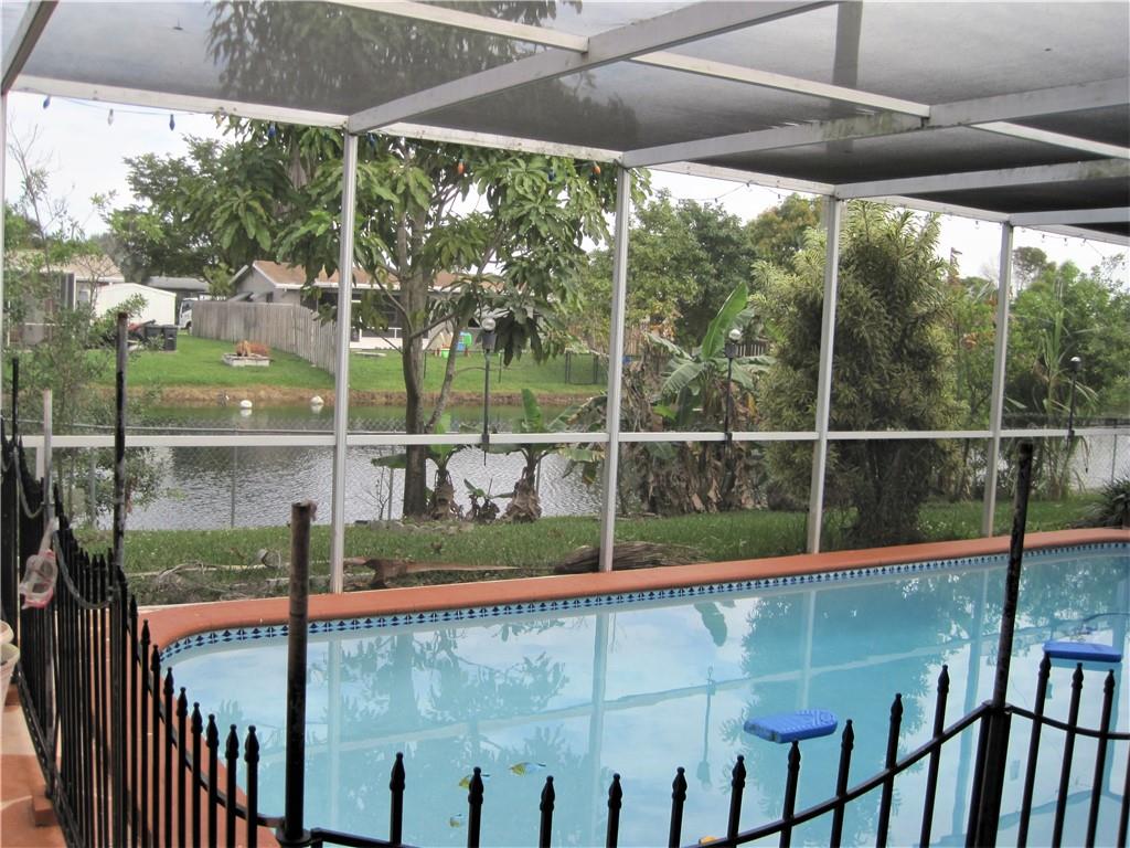 Fantastic screened pool home on the water. If you like fruit trees this is the place. In your yard you have Mango, Papaya, Grapefruit, Orange, Tangerine, Banana, Avocado and Sugarcane. Kitchen has granite counter tops, gas stove and a breakfast nook. Crown molding through out home. Guest bathroom has tile from floor to ceiling. Master bath has a whirlpool tub and door leading out to pool area. Master walk-in closet is 10 x5 1/2. Back of home has sliding door that open to pool area.
