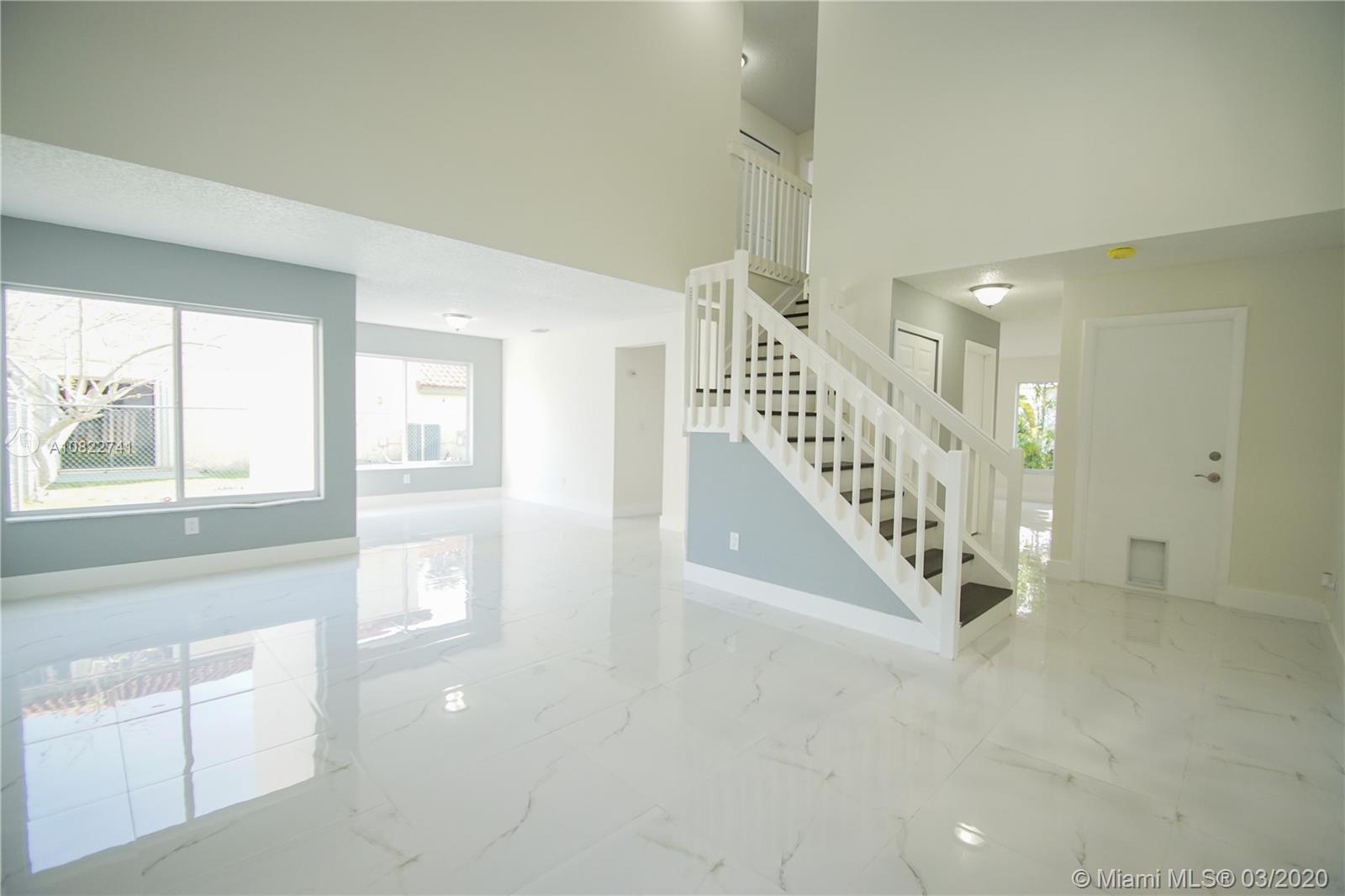 This home features 4 Bedrooms 2 1/2 Baths One of a kind fully renovated home with a 2 car garage. Professionally decorated w/ Tiles & Vinyl Waterproof Floors. Modern kitchen w/ Quartz counter tops and NEW stainless steel appliances. Bathrooms remodeled w/quartz tops. Large Layout w/High ceiling. On a corner lot with water views. NEW fresh Interior/Exterior Paint. Low HOA. TURN KEY Ready.