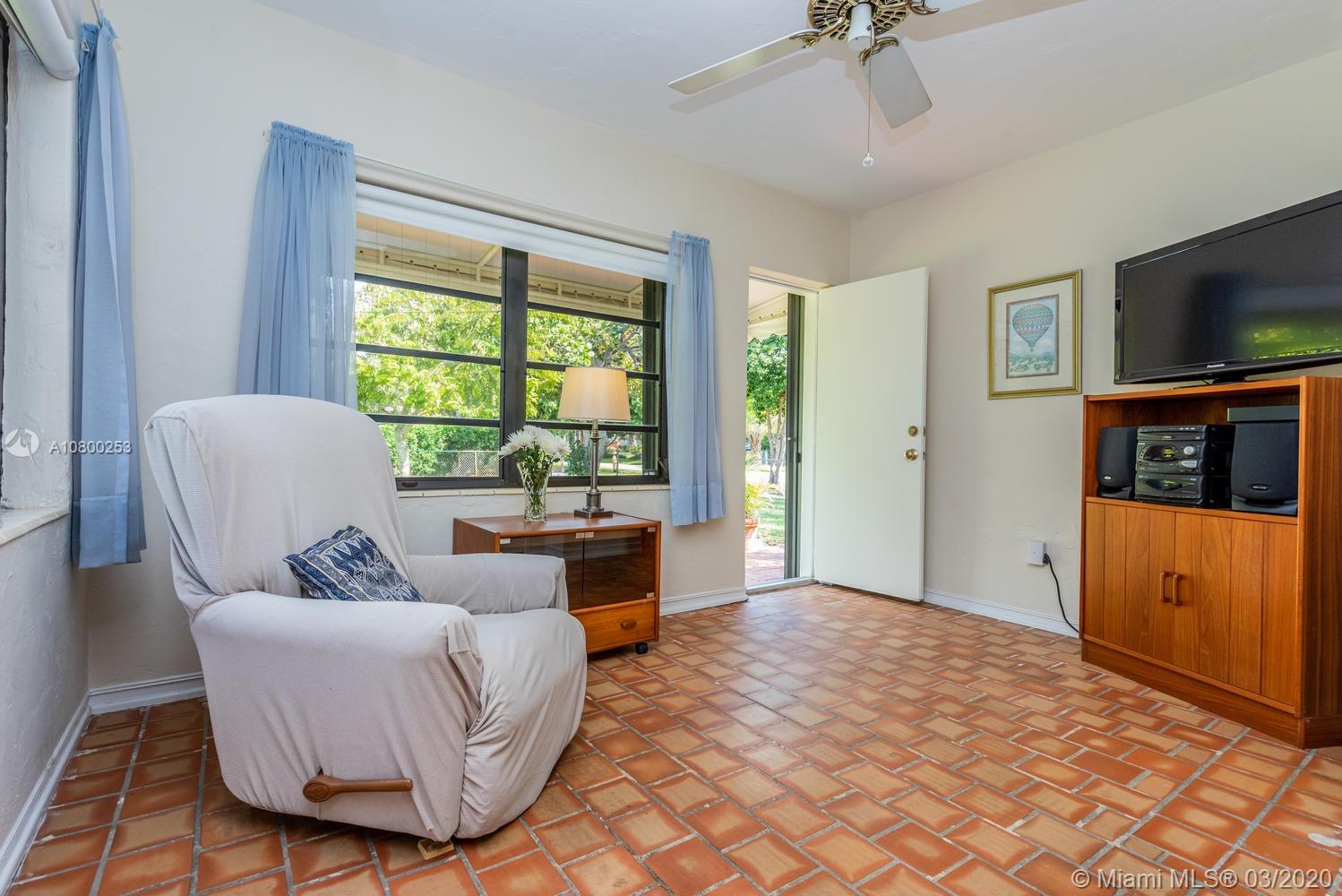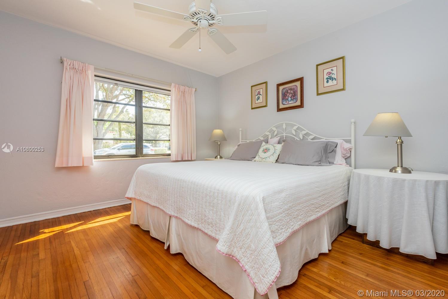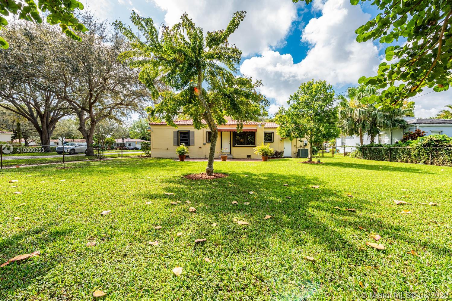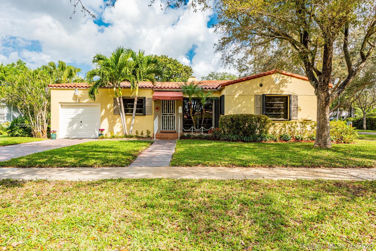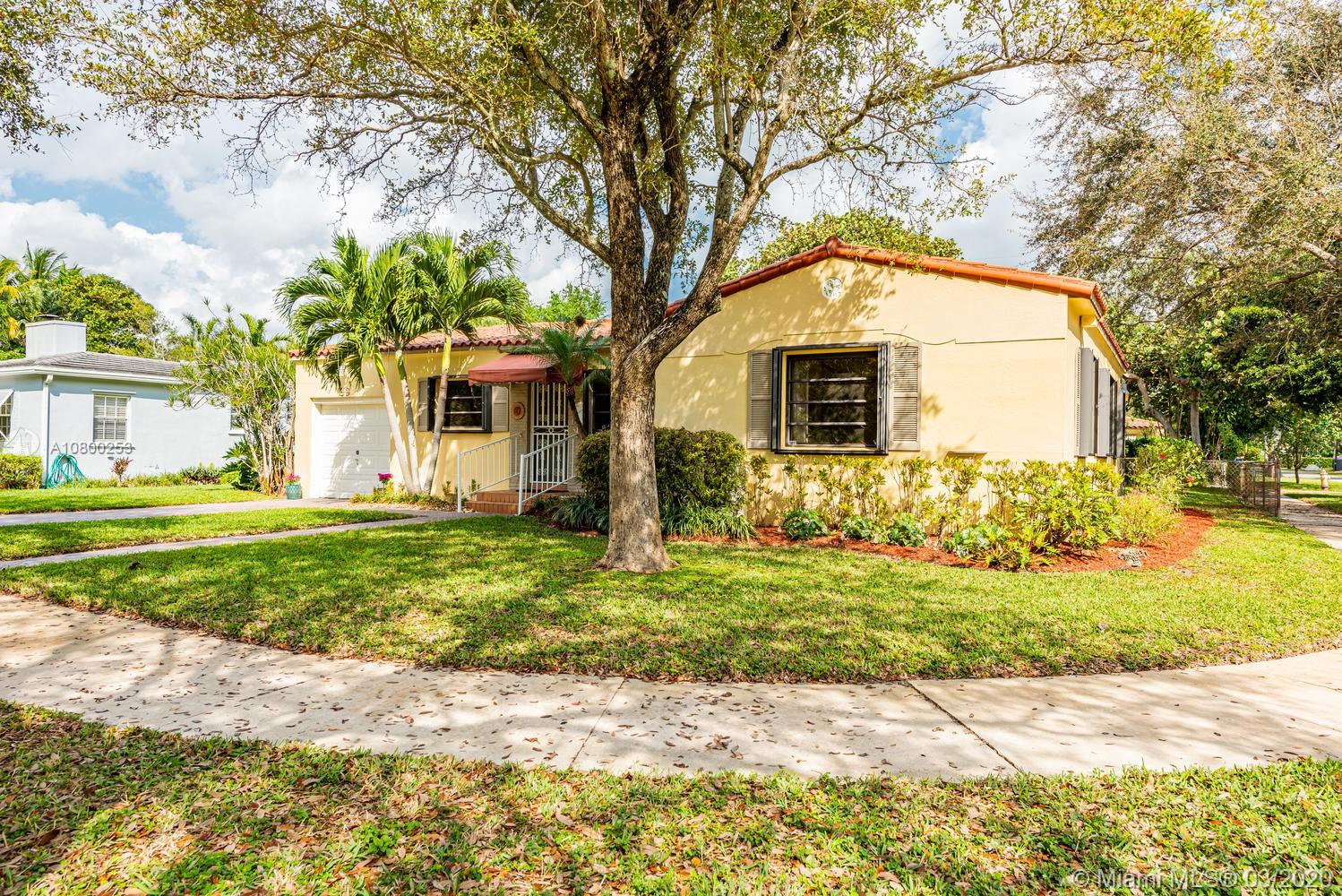 OPEN SAT, 4/25 from 1-3 PM. Miami Shores 1940's “Charmer” Welcomes you home! This is what everyone is looking for and hard to find… Original Art Deco features preserved in the decorative exterior masonry facade, in the formal dining room with curved walls and niches with shelves, in the folding glass french doors dividing the living room and family room/sun room, and in archways & decorative trim tiles in original bathrooms. There is a working fireplace w/Deco touches as well. Meticulously maintained over the years. Gleaming wood floors. On a quiet street on a Spacious corner lot and fenced yard.True 3 bedrooms (2 of them accommodate king-size beds!) plus full one car garage...good storage! Kitchen has been updated with solid wood cabinets & stainless steel appliances. A must see!