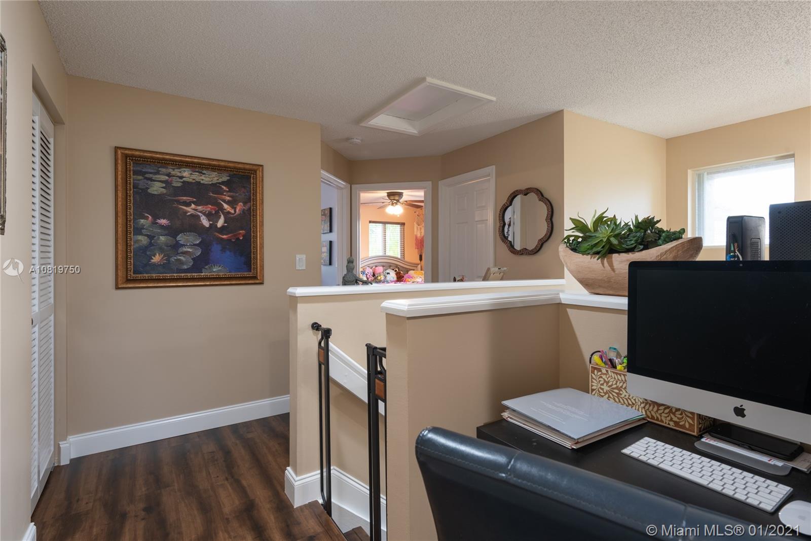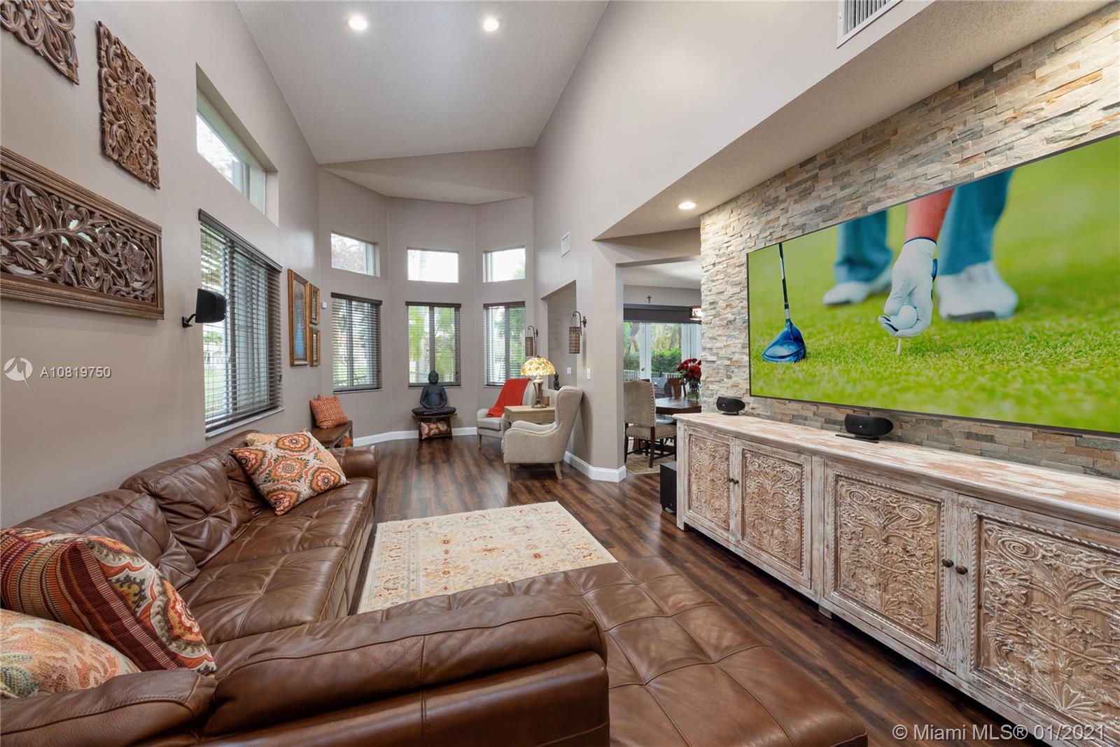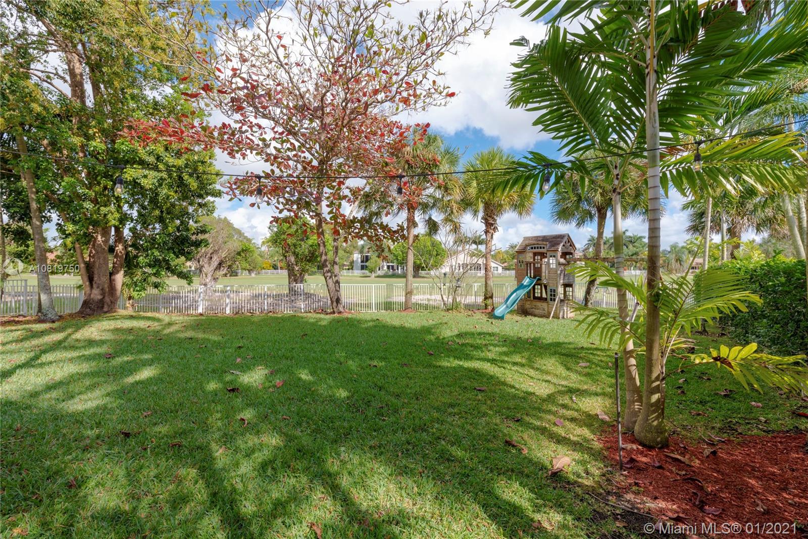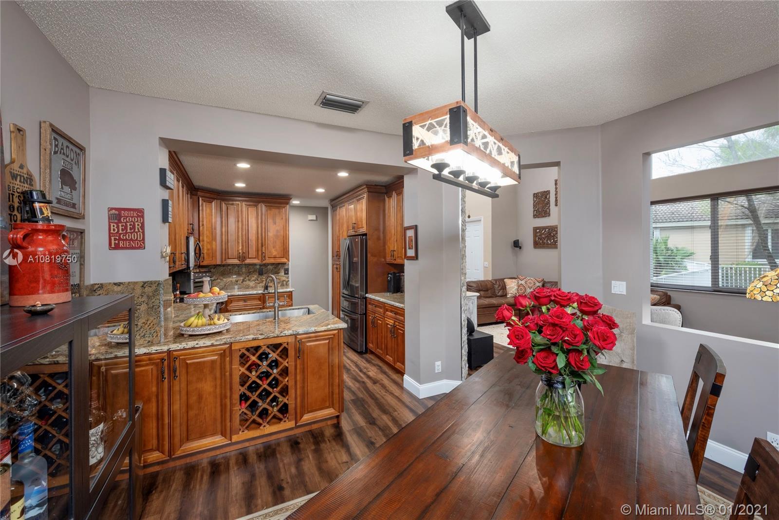 Fully renovated end-unit townhome resting on an oversized lot overlooking the golf course of Grand Palms. This exquisite home features volume ceilings, a gourmet kitchen with high-end counter-tops and stainless steel appliances. Wood floors throughout the home. French doors in the breakfast area lead to the tiled, outdoor patio area. Step outside and enjoy an expansive, fully fenced backyard. The home futures accordion shutters and a long driveway to accommodate parking for multiple guests. Community amenities include pool, child play area and more.