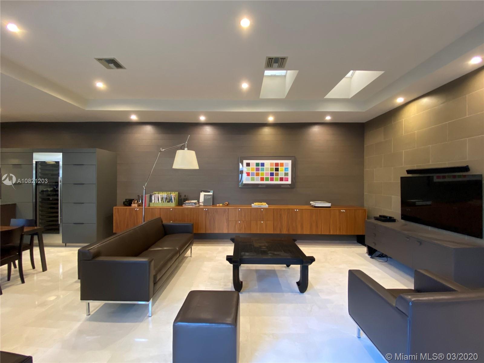 Gorgeous rarely-available contemporary courtyard home with its own tropical pool in private 24-hour man gated Villa Del Sol subdivision! Updated 2BR/2bath plus DEN convertible to third BR with bright open floor plan, crème marble floors throughout, modern walnut & oak living room built-ins and accents, high ceilings, skylights, recessed LED lighting, large chef’s kitchen with floor to ceiling windows, SubZero fridge & full height wine storage, Miele wall oven/silent dishwasher, Bosch induction cooktop, Euro-style cabinets, quartz countertops, double basin stainless steel sinks, separate prep sink, huge master bedroom suite, updated bathrooms/walk-in showers. Optional club membership, great schools, low HOA fees. South Florida living in your courtyard paradise, perfect for entertaining!