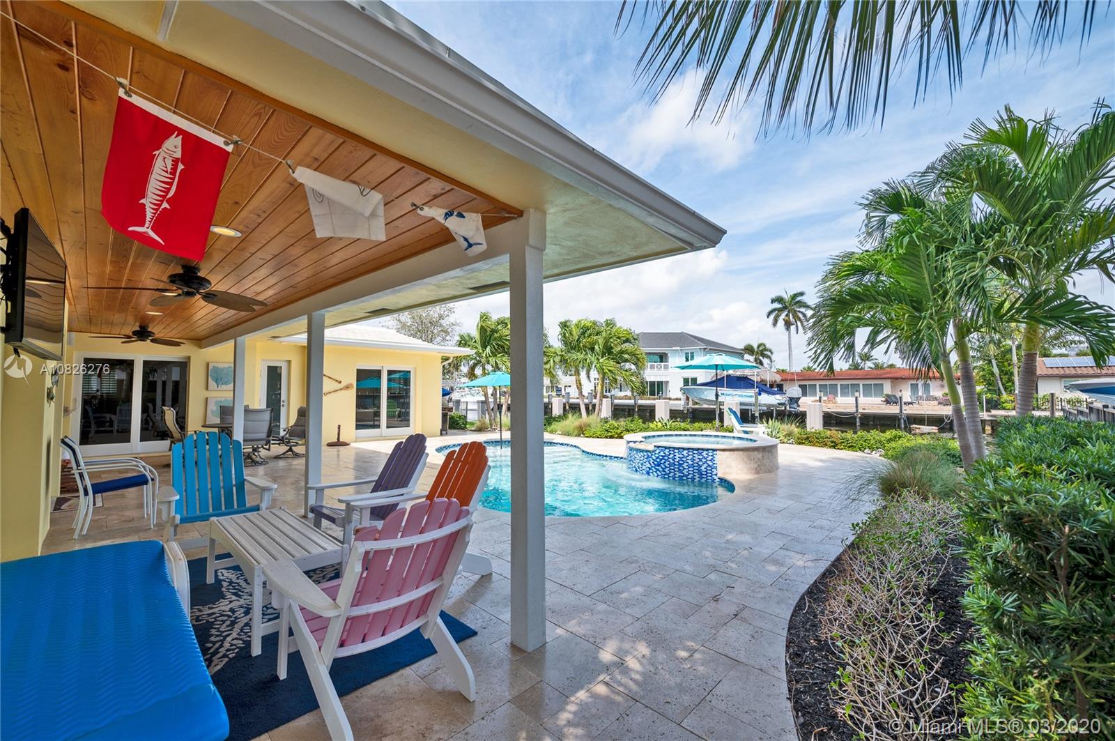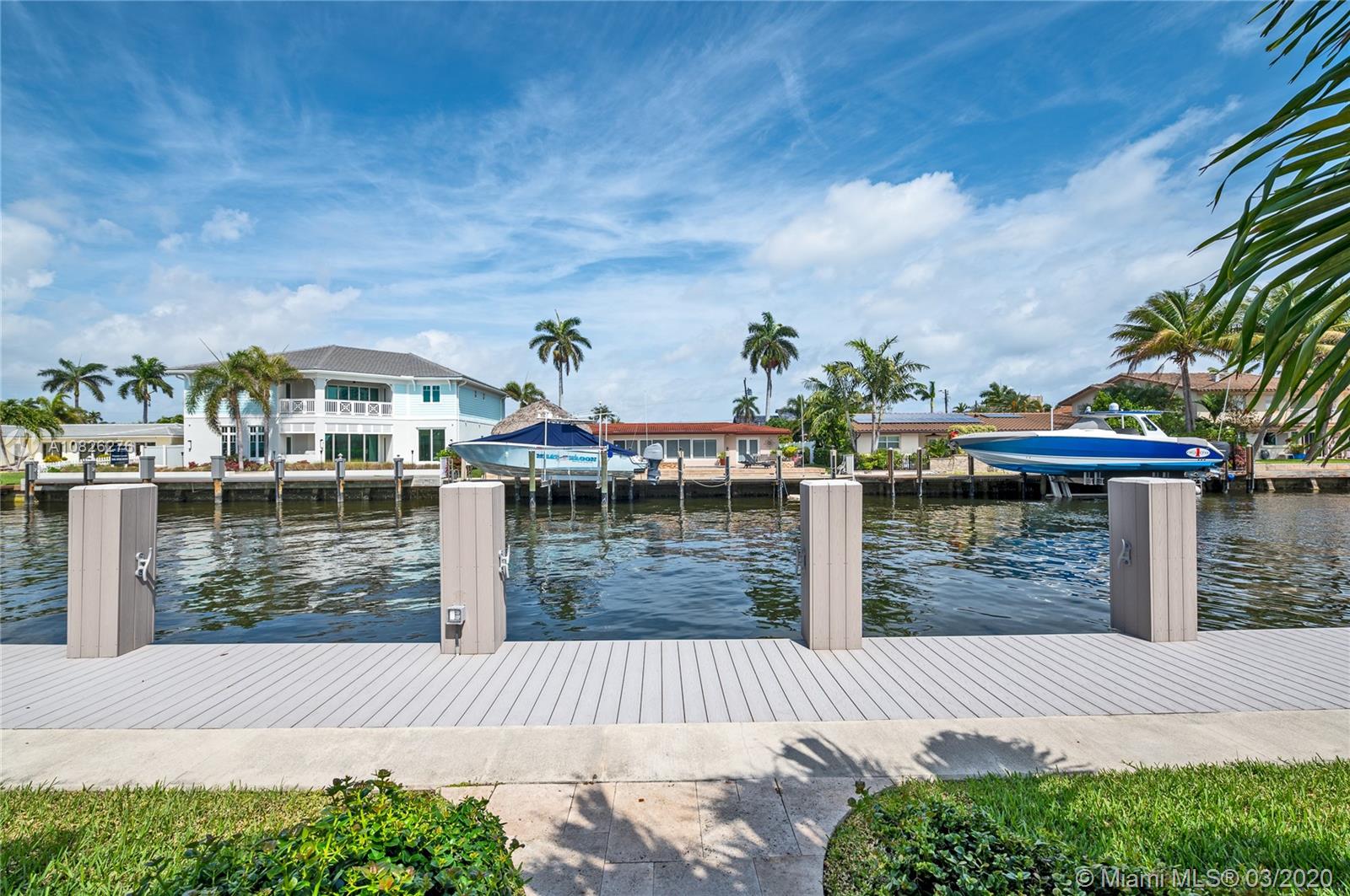 This exceptional waterfront home was completely re-designed & remodeled using the finest materials. It features a beautiful Chef’s kitchen with Wolf/Sub-Zero (gas) appliances, Perlick wine fridge & clear-ice ice-maker, hardwood floor, indoor laundry room, 2 luxurious full cabana bathrooms , newer roof and A/C unit, solid-core interior doors, heated salt-water pool/Jacuzzi with waterfall,new 55’composite dock with electric service, on-demand, gas water heater, exterior electric panel for generator, professionally landscaped/lighted/irrigated. PGT Impact Windows & Doors. Desirable northern exposure lot, one house from ICW. Please see the attached document for more feature details. Enjoy the photos because there aren’t enough words to describe this home.