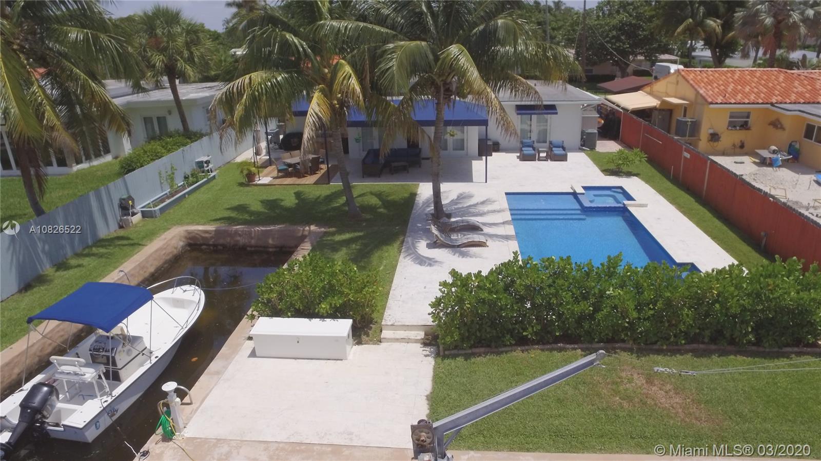 One of kind turn-key waterfront home with a heated pool and Jacuzzi in the highly desirable gated neighborhood of Keystone. Beautiful white porcelain tile throughout with renovated bathrooms, walk-in closets, gas appliances including the pool heater. Lush green backyard with 75 ft of water frontage including a hard to find and exceptional boat basin measuring 43X19 Ft. large enough for its own boat lift. The perfect turn-key home for a boater, with Biscayne Bay, Haulover Sandbar and open ocean access just a few minutes away. 360 Tour- https://mls.ricohtours.com/56a55587-6a55-4f32-9c63-cd2fa8c2e96a/