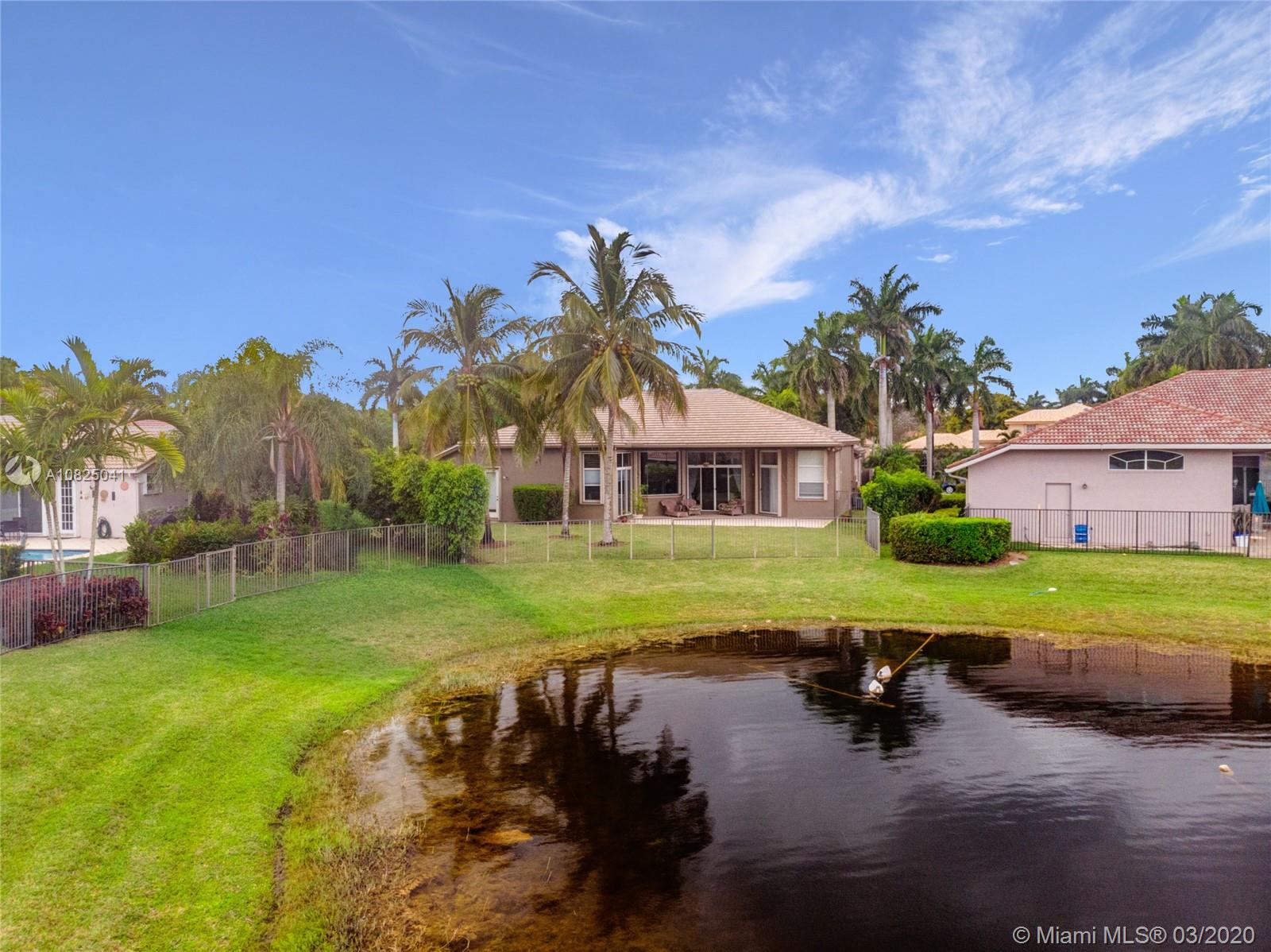 Exceptional 4 bedroom (plus office) lakefront home with long and wide water views and no neighbors behind. Large covered patio overlooks the spacious fully fenced and lushly landscaped yard perfect for kids and pets while offering complete privacy for entertaining or just relaxing. The center island kitchen is expanded and features 42" wood cabinets, granite counter tops, double wall ovens and built-in refrigerator. Master suite boasts a sitting area, 2 walk-in closets and tastefully remodeled master bathroom with designer tile, large shower, dressing bench and raised cabinets. Additional features include new LED lighting, separate utility rm and interior/exterior recently painted. Accordion shutters. 3 car garage/circular driveway offers lots of parking. FaceTime showings available!