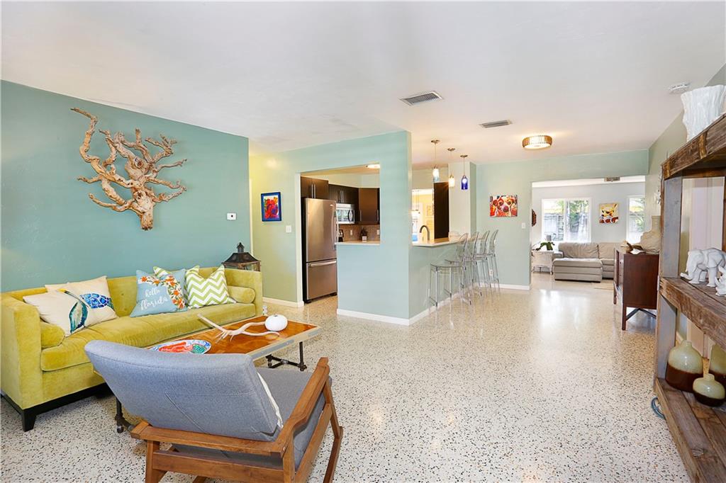 Tastefully updated pool home located in east Fort Lauderdale. This cool home features modern finishes, while maintaining some of its original charm such as the polished terrazzo & concrete floors. Loaded with upgrades including a fully remodeled kitchen with stainless steel appliances, dark wood cabinets, & quartz counter tops, AC & ducts replaced 2014/2015, brand new interior doors, impact doors & windows throughout, main drain line plumbing under house changed to PVC in 2014 (cast iron pipes removed). Pool & outdoor shower are just 7 years old. Fenced yard with pavers & a relaxing fountain by the pool, surrounded by greenery. 2 zone well sprinkler system. 5' x 8' storage room. Only 5 minutes from the beach. Quiet street close to shopping, dining and much more.