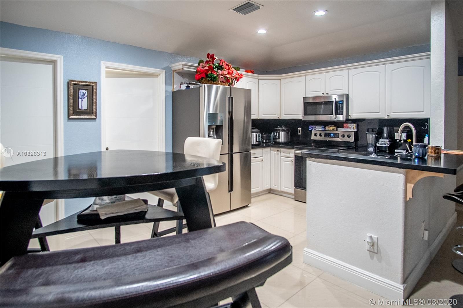 Very well maintained home, with several upgrades through current ownership. Less than one-year-old AC. Open concept kitchen. Originally 2 Beds/2Bath, currently the garage has been converted into a 3rd room that is being used as a bedroom for the kids and a laundry room. Covered terrace. Wide side entrance for vehicle access to the back yard, water well for sprinkles, hurricane shutter throughout the house. Low HOA $100/month includes security 24h, two swimming pools, tennis courts, and a park. Owner Motivated