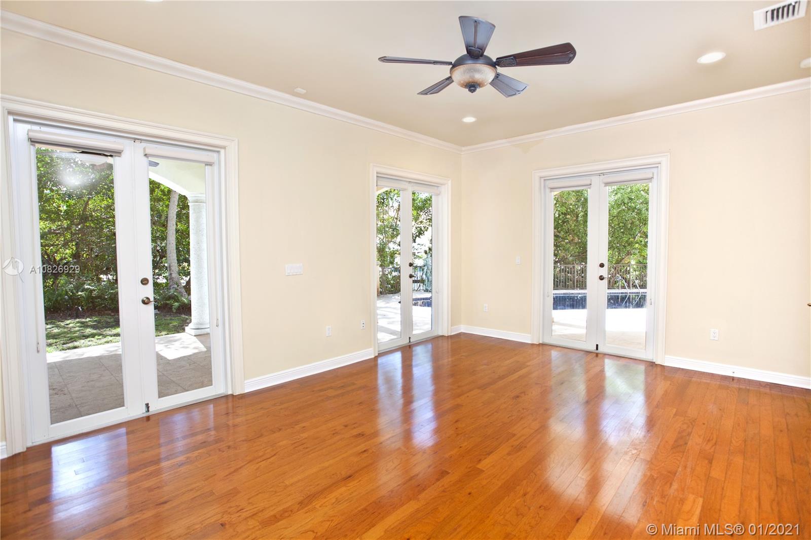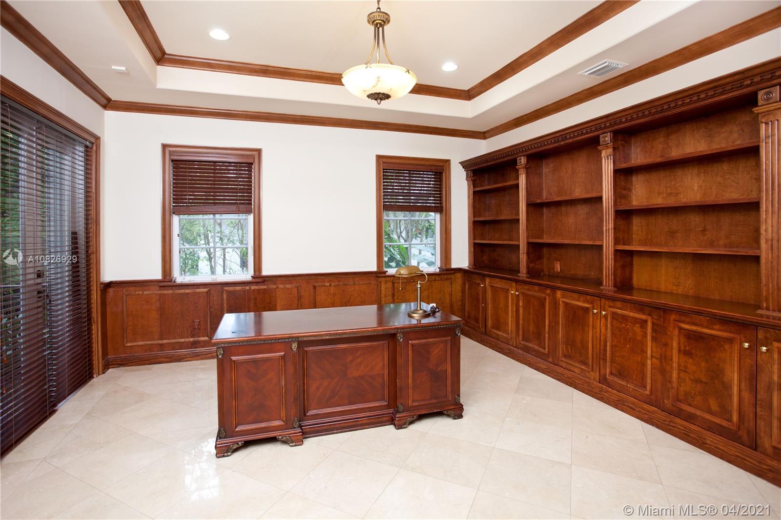 NEW PRICE! No bridges to Bay in Islands of Cocoplum. Gated for privacy on 20,862 sq ft lot on cul-de sac. Porte cochere & double door opening to foyer, high dome ceiling & winding staircase, elevator, formal living rm w/fireplace & formal dining rm. Family rm & large kitchen w/breakfast area. Across the living rm, there are a powder rm, studio/office, large guest suite, cabana bath. On 2nd floor, the private spacious main suite features 2 walk-in closets, 2 vanities, his & her water closets & large terrace. Bedrm wing features 3 en-suites & a den/office. The patio has a large covered terrace, pool & dock. Marble & hardwood floors. 3-car garage, Laundry rm, staff qrtrs. Impact windows and accordion shutters. AS-IS dock, needs work.