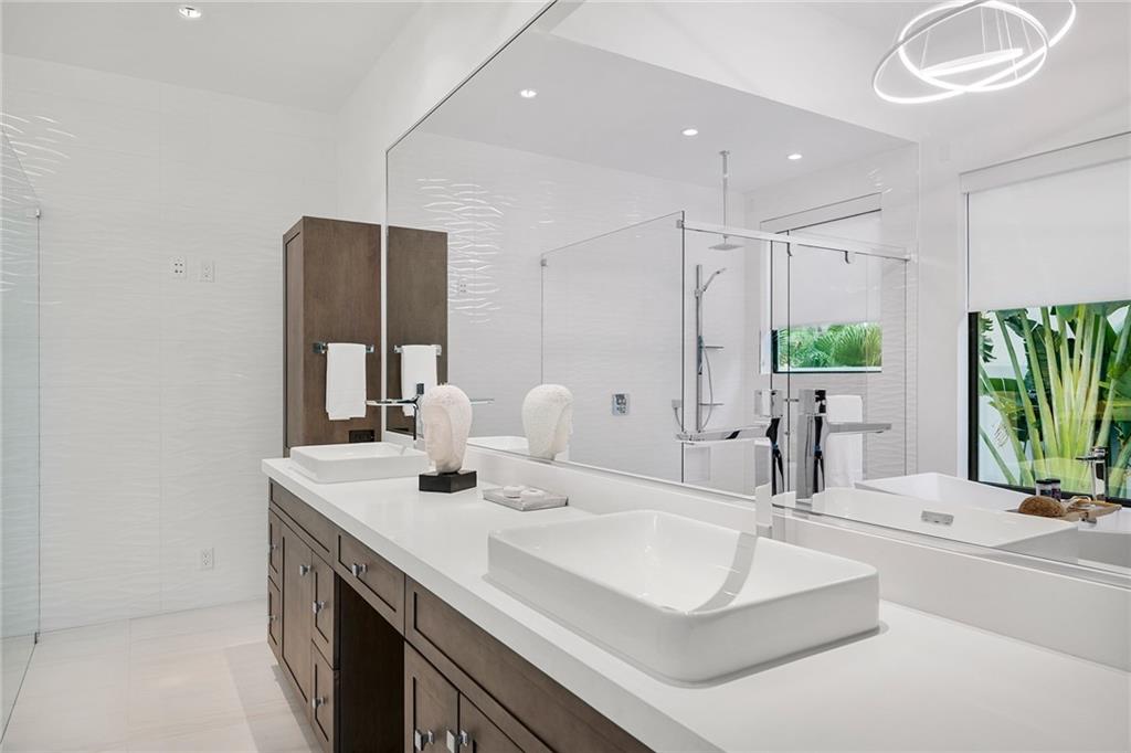 New Construction delivered January 2020 by award winning Innovative Designs & designed by Ames Int'l Architecture. Builder offering a $35,000 incentive for design and or towards closing costs to buyer. 5 Bedroom 5 Full Bath 2 story estate situated on a 75' wide lot. Features include 12' ceilings in main living area including master bedroom on the 1st floor. 3 bedrooms on 2nd floor & guest bedroom on 1st floor. Chef's kitchen includes Wolf gas cooktop & oven, Sub-Zero refrigerator & microwave, Asko dishwasher & quartz countertops. Covered summer kitchen & entertaining area overlooking amazing 13x37 pool w/sun shelf & self-brimming spa. Monolithic Steel Stringer floating staircase w/solid wood treads & steel picket railing w/wood handrail. Garage has ability to park 2 cars plus golf cart.