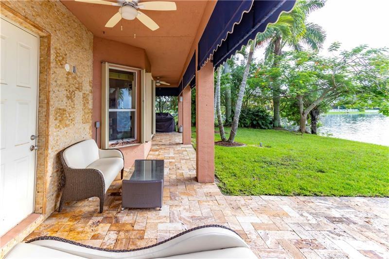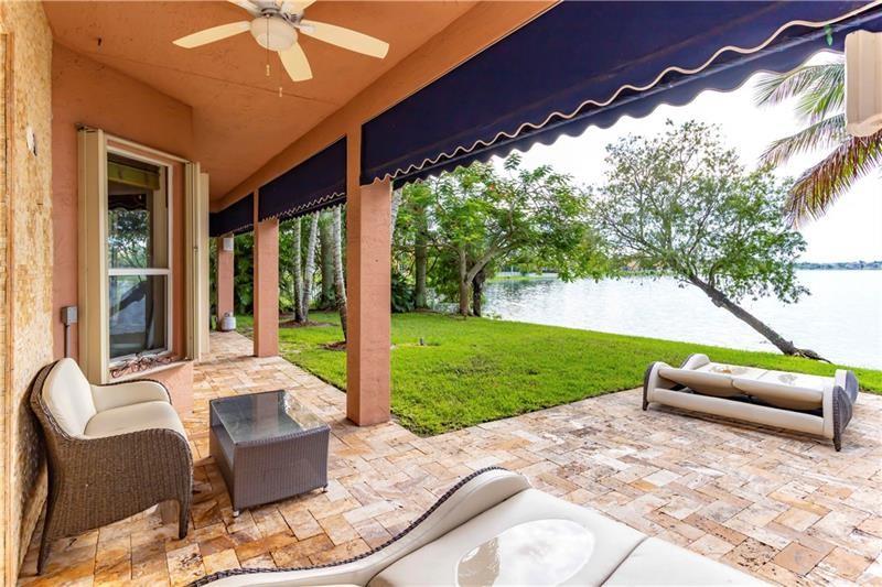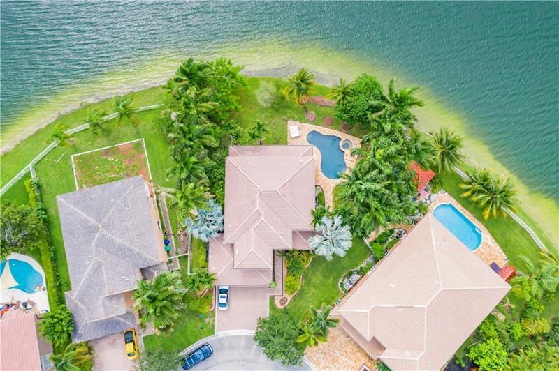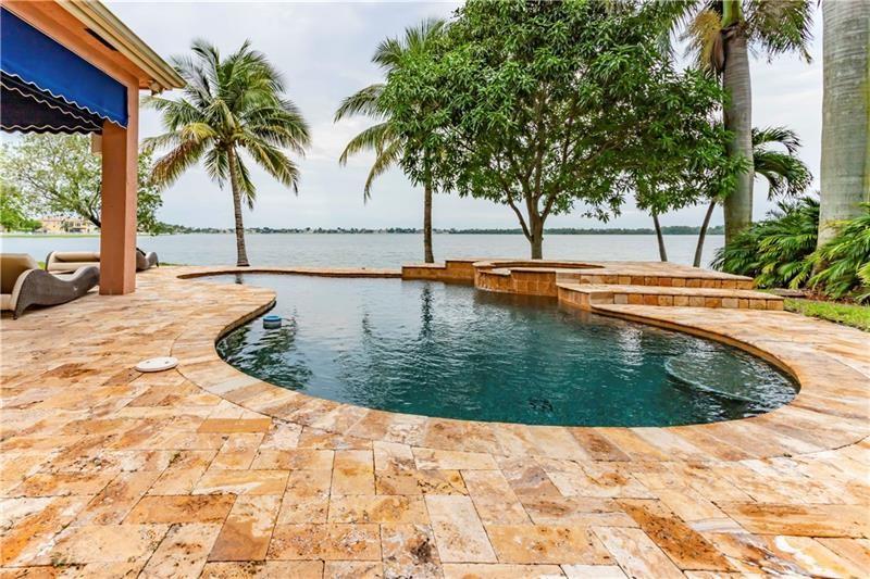 Welcome to the most spectacular wide lake views in Sunset Lakes! Waterfront 6 bedroom 4.5 bath home with a 3 car garage at the end of a cul-de-sac on an oversized lot that extends out over the lake. Features include an updated kitchen with river white granite counter tops, stainless steel appliances and cherry wood cabinets, a first floor guest bedroom with cabana bath, a separate entranced office, an enormous master bedroom with a large sitting area and his/her bathrooms connected by the shower, an upstairs laundry room, polished travertine tile throughout the entire first floor and all bedrooms, 2 a/c systems and a free-form heated pool with raised spa overlooking the panoramic views and amazing sunsets.