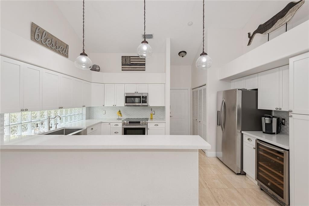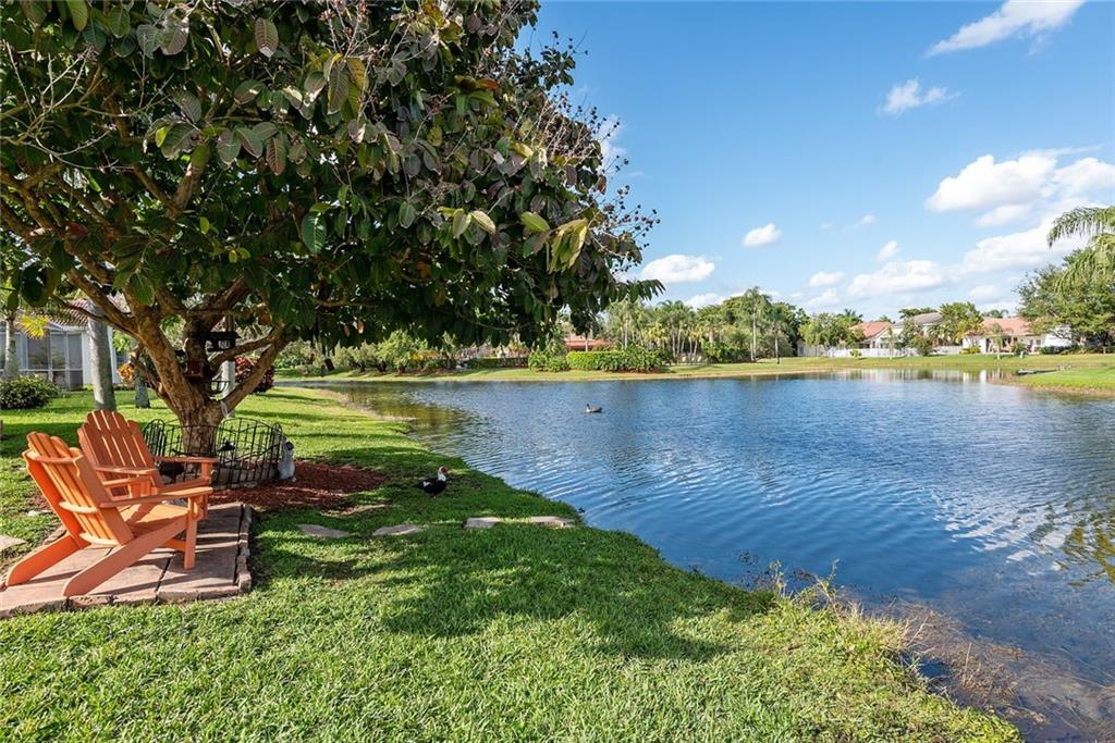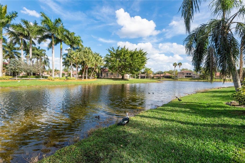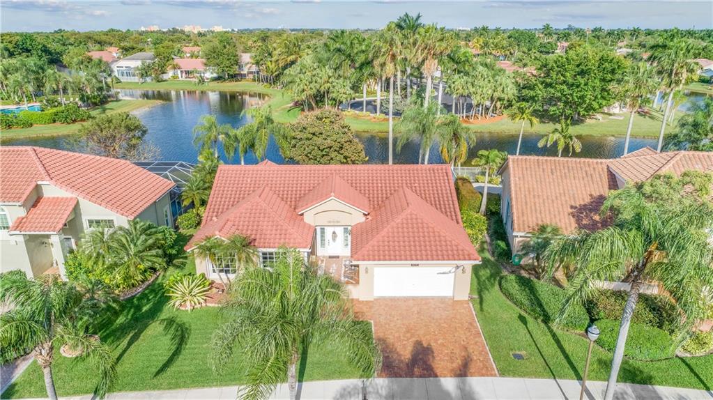 Nestled on a lake front lot, you will find this exquisite appointed home with beautiful design and finishes. Located in one of Weston's most sought after community. Among many features this bright open floor plan offers high volume ceilings and neutral tile throughout. The gorgeous new kitchen has a beautiful caesar-stone counter top, stainless steel appliances, wine cooler and snack bar. Bathrooms beautifully remodeled. Spacious master suite. Living area with unobstructed amazing views of the garden and lake. Accordian shutters. Extended driveway with imported pavers. Screened covered patio and pergola are ready for your enjoyment and entertainment. Come home to this unique oasis!