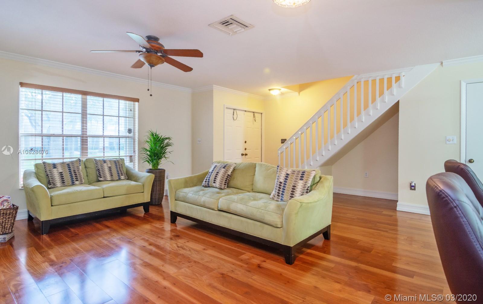 Open, Modern & Spectacular 3 Bedroom 2 1/2 Bathroom two-story townhome in Pembroke Pines. Step out of the lovely courtyard setting into this amazing home with beautiful hardwood flooring throughout! The remodeled kitchen is breathtaking with Stainless Steel appliances, granite countertops, & endless space to move around, cook and entertain! The sliding doors lead to the private brick-layered area with a storage unit. Perfect for Barbeques or relaxation. The Master suite is very spacious with two closets! Accordion Shutters! Water Heater, Microwave and Washer 2019 and the AC is 2 years old. Association fee $150 per month! The location could not be any better with all the shops one can think of & also being in close proximity to the major highways and hospital. This is a definite MUST SEE!