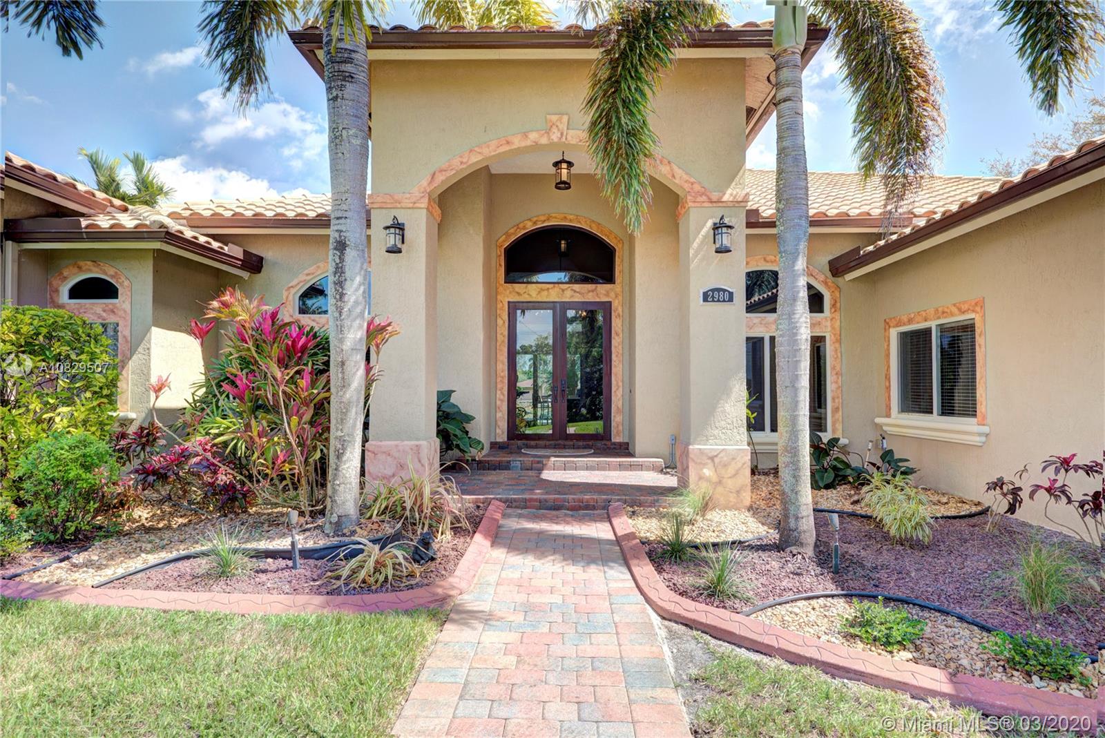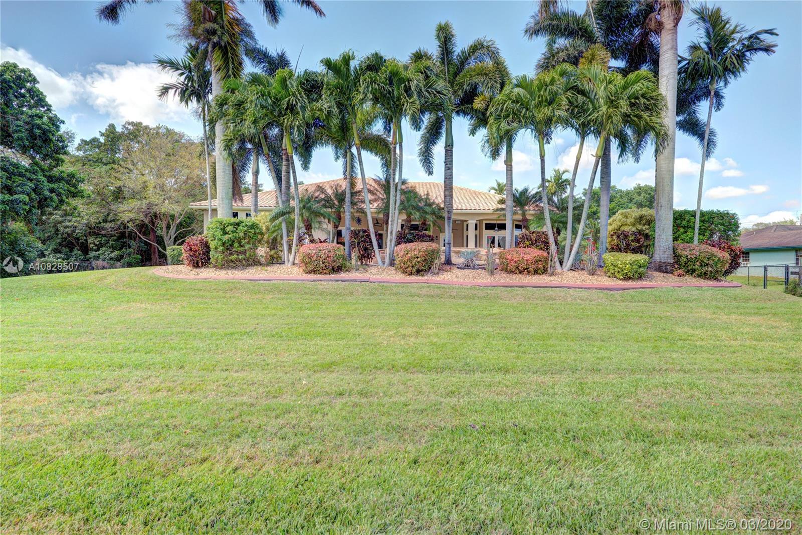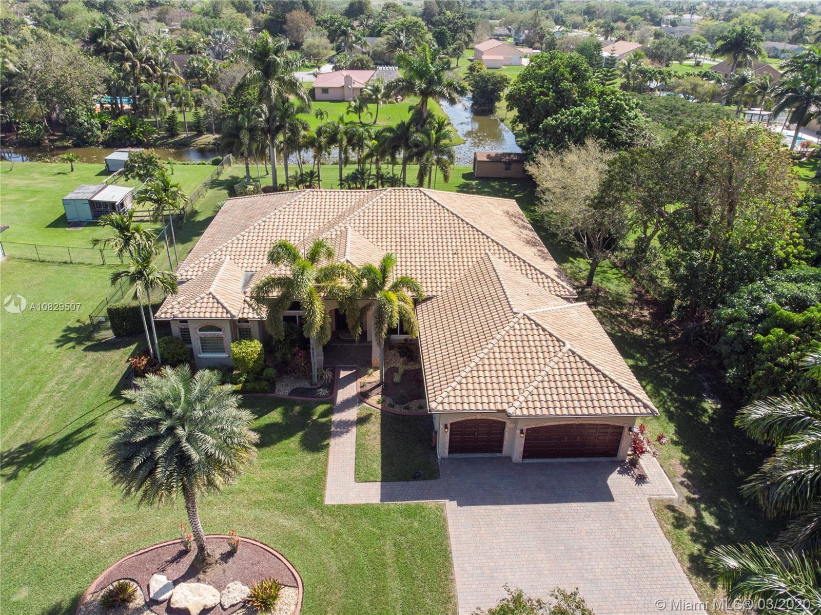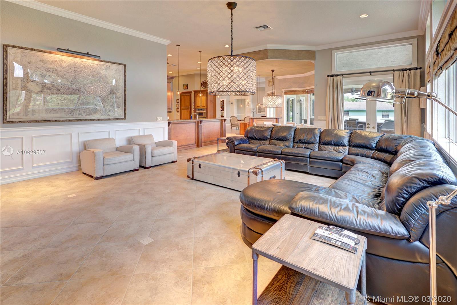 SPECTACULAR ESTATE 1 STORY RANCH STYLE 4 BEDROOM + OFFICE 3 BATH 3 CAR (EXTRA DEEP) GARAGE HOME LOCATED IN SOUGHT AFTER DAVIE, FLORIDA. BUILT ON OVER A BUILDER'S ACRE LOT, SITUATED ON END OF CUL-DE-SAC COMPLETELY UPGRADED WITH EVERYTHING MASSIVE... 14' CEILINGS, IMPACT WINDOWS/DOORS, HUGE KITCHEN, WALK IN PANTRY, ISLAND, CUSTOM CABINETRY, SS APPL, BAR, CROWN MOLDING, WAINSCOTING, OVER-SIZED BEDROOMS, 3 NEW A/C UNITS, NEW WATER HEATER, 9" INTERIOR PANEL DOORS, MASSIVE MASTER BEDROOM/BATHROOM, SPLIT SIDE SINK/COUNTERS, DUAL SHOWER HEADS, ALL CUSTOM CLOSETS. AMAZING RESORT STYLE BACKYARD, HUGE POOL AND SPA, HUGE SUMMER KITCHEN COMPLETE WITH FULL GRILLE, WET BAR, KEGERATOR, LED ROPE LIGHTING AND PLENTY OF GRASS AREA FOR ALL ATHLETICS, EVEN A 30' X 14' ULTRA STURDY STORAGE SHED AND SIDE KENNEL.