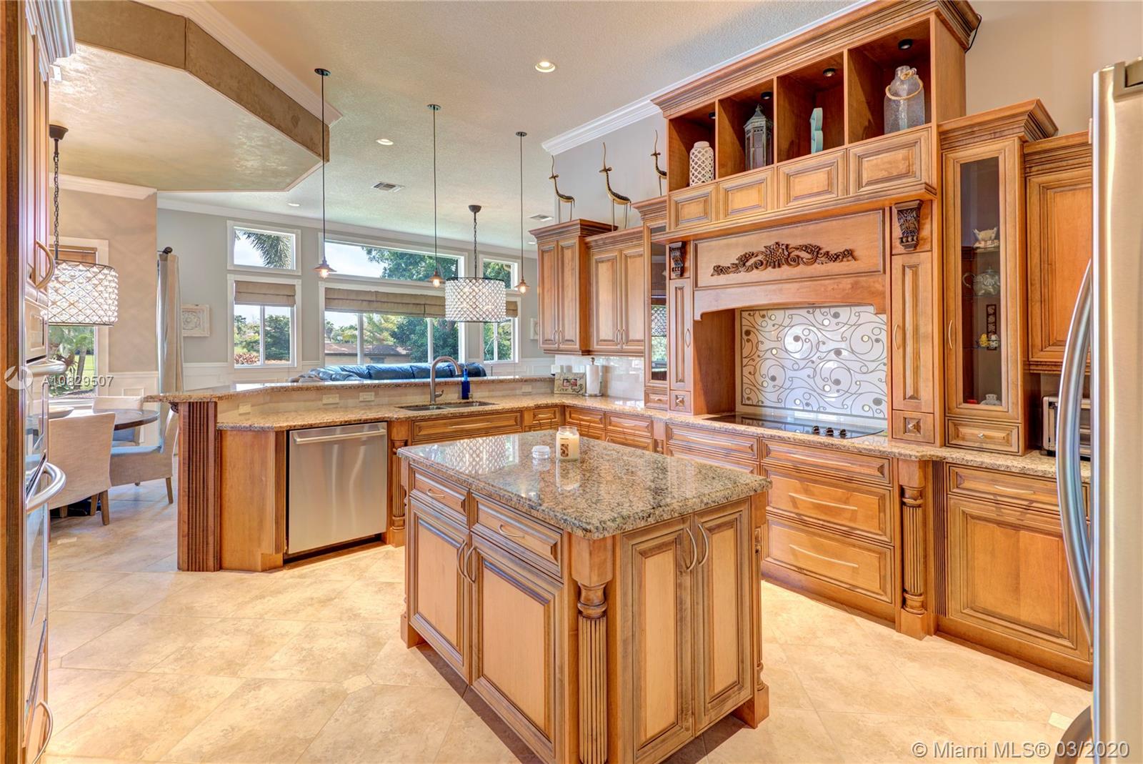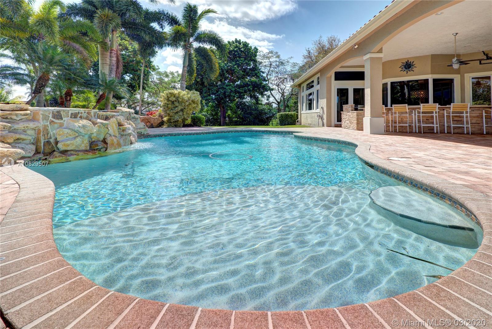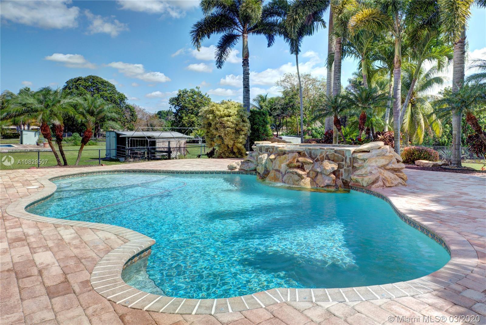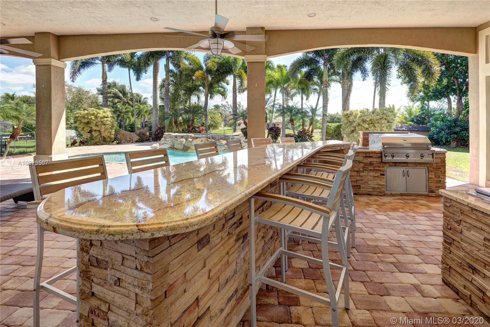 SPECTACULAR ESTATE 1 STORY RANCH STYLE 4 BEDROOM + OFFICE 3 BATH 3 CAR (EXTRA DEEP) GARAGE HOME LOCATED IN SOUGHT AFTER DAVIE, FLORIDA. BUILT ON OVER A BUILDER'S ACRE LOT, SITUATED ON END OF CUL-DE-SAC COMPLETELY UPGRADED WITH EVERYTHING MASSIVE... 14' CEILINGS, IMPACT WINDOWS/DOORS, HUGE KITCHEN, WALK IN PANTRY, ISLAND, CUSTOM CABINETRY, SS APPL, BAR, CROWN MOLDING, WAINSCOTING, OVER-SIZED BEDROOMS, 3 NEW A/C UNITS, NEW WATER HEATER, 9" INTERIOR PANEL DOORS, MASSIVE MASTER BEDROOM/BATHROOM, SPLIT SIDE SINK/COUNTERS, DUAL SHOWER HEADS, ALL CUSTOM CLOSETS. AMAZING RESORT STYLE BACKYARD, HUGE POOL AND SPA, HUGE SUMMER KITCHEN COMPLETE WITH FULL GRILLE, WET BAR, KEGERATOR, LED ROPE LIGHTING AND PLENTY OF GRASS AREA FOR ALL ATHLETICS, EVEN A 30' X 14' ULTRA STURDY STORAGE SHED AND SIDE KENNEL.