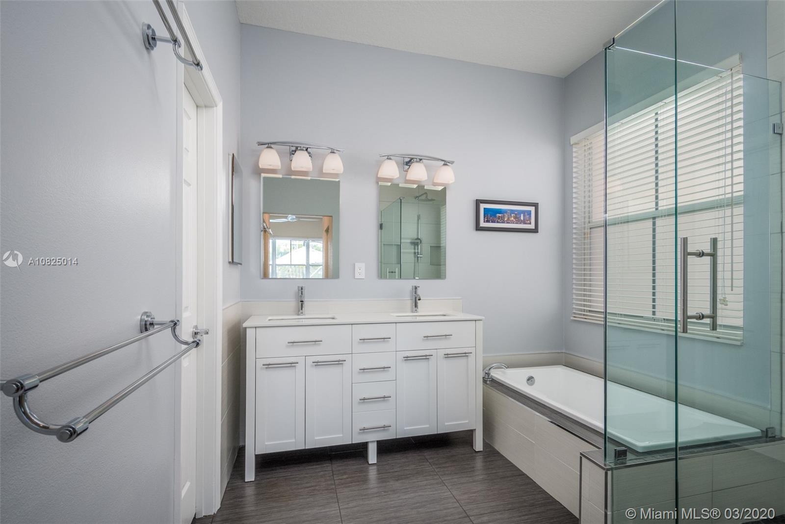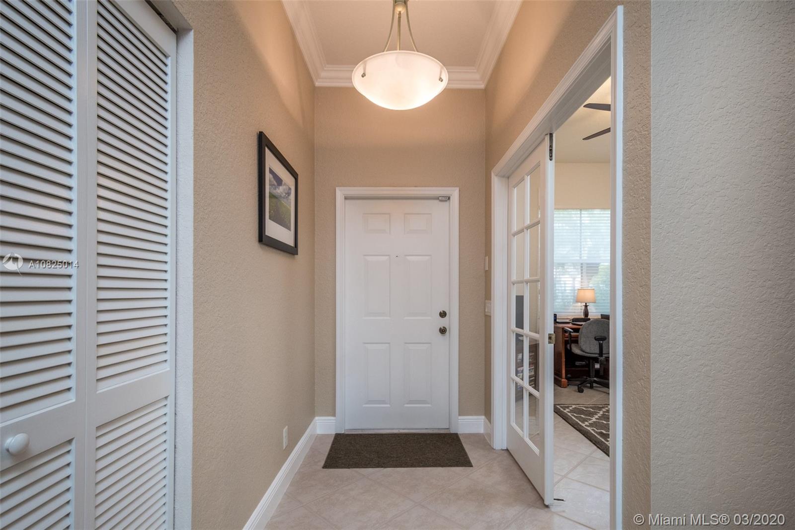 Serene backyard oasis, with pool, hot tub and water views that feels like another living room with the included outdoor tv and furniture. Large french doors that fully open to views of pool and water and create an indoor/outdoor feel in the open floor plan. Professionally tinted windows and doors increase daytime cooling efficiency and privacy. New high efficiency, 2 stage AC and Pool heater (2016). Bright white crown moldings and raised baseboards against neutral wall coloring create a resort like feel. Accordion shutters on windows and doors allow for low stress hurricane prep.