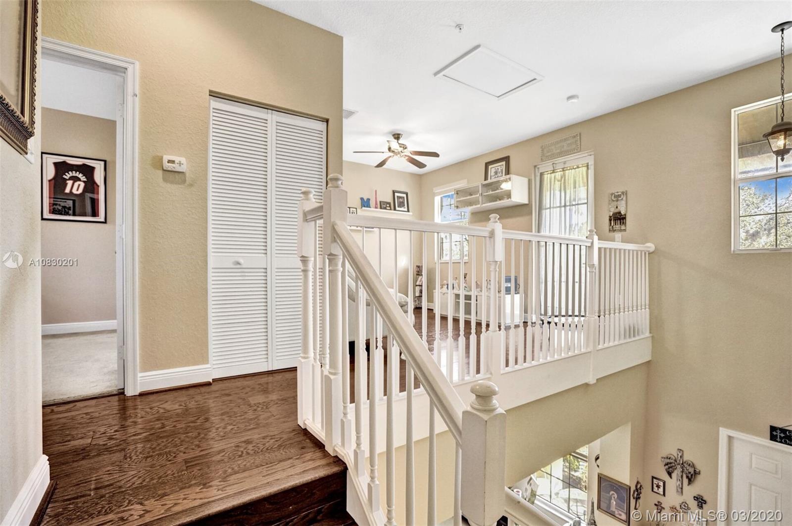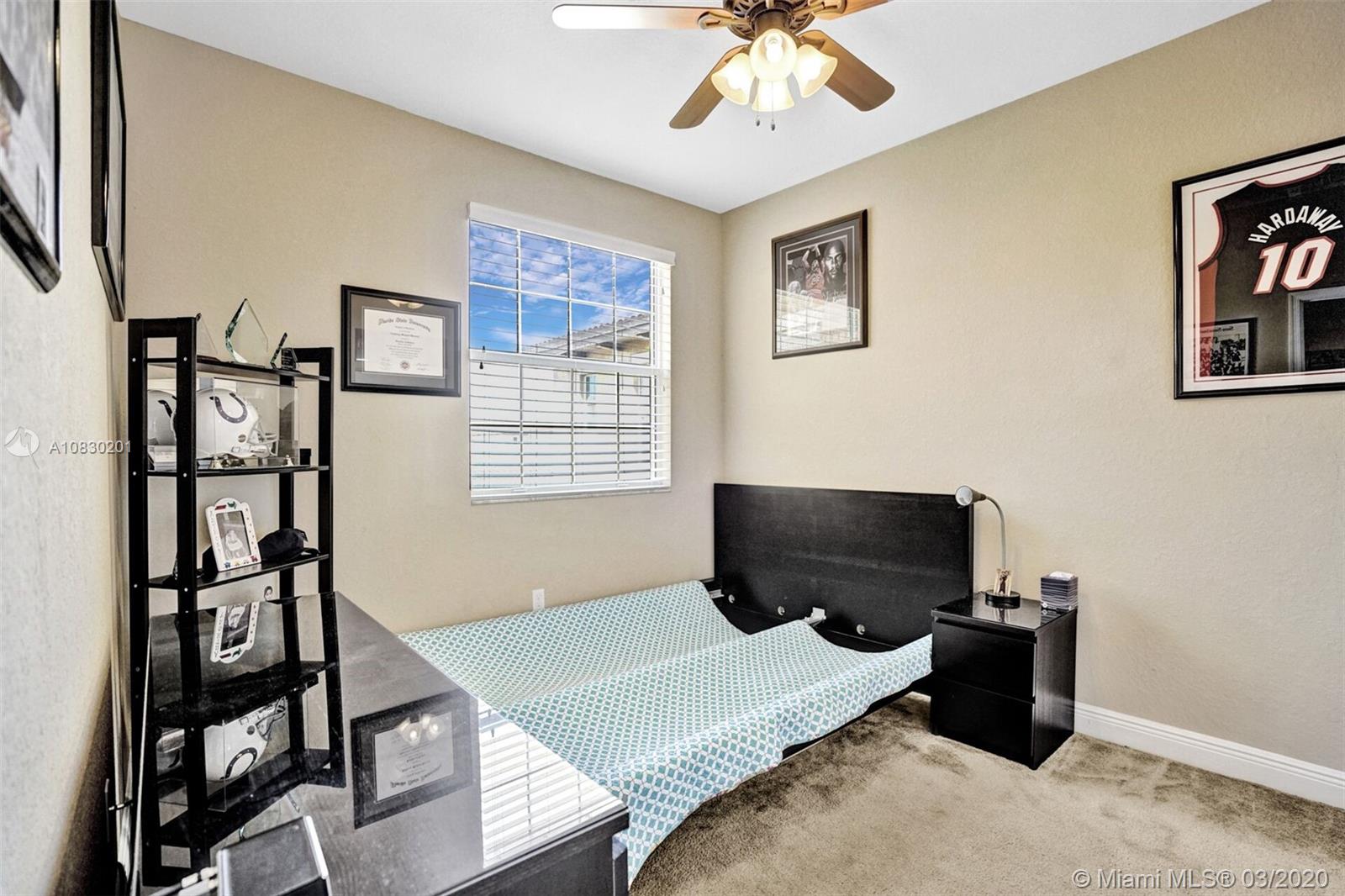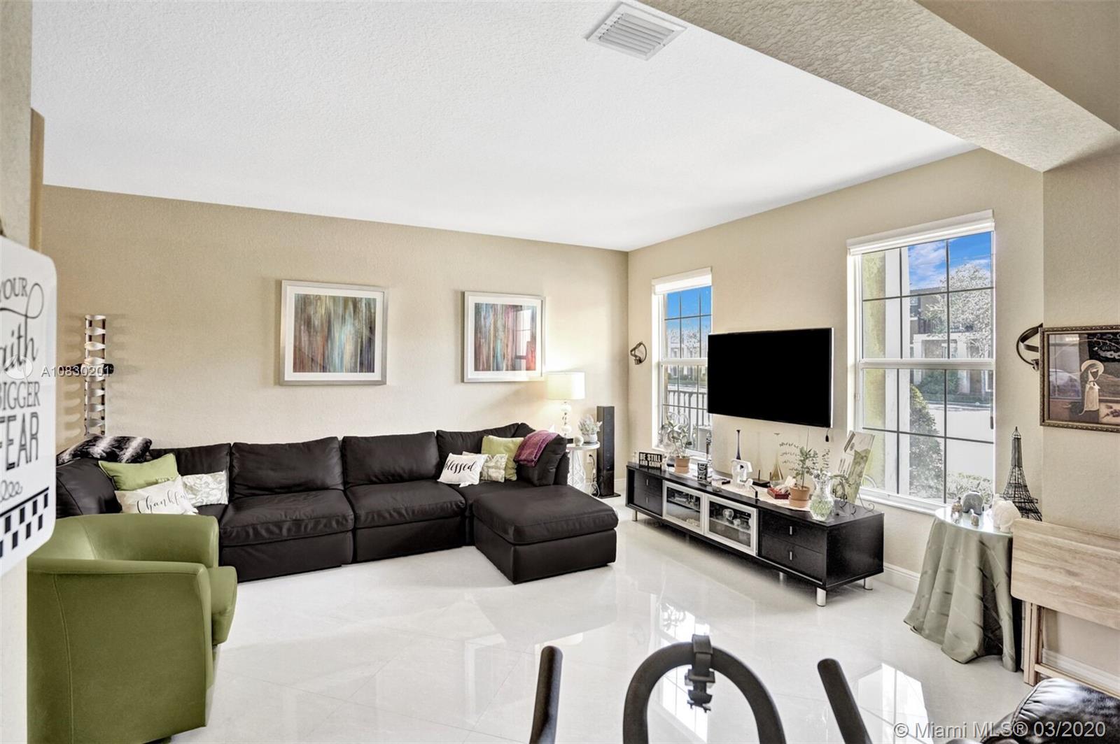 Come and see this incredible town home in centrally located Cobblestone, Pembroke Pines. Cyprus model with 3 bedrooms, 3 full baths plus loft. 2 car garage. One bedroom and bath downstairs perfect for a teenager or in laws. Beautiful neutral porcelain tile on first floor and hardwood floors on second floor. Built in bar with storage cabinet. Updated granite and undermount kitchen sink with ss appliances. Hunter Douglas privacy shades in living and dining room with wood blinds through out. Custom closets and shelving in all the bedrooms. Impact windows. TV's included. Low HOA includes basic cable, alarm, community pool and gym. Kids playgrounds. Close to Whole Foods, Pembroke Gardens and easy access to I75.
