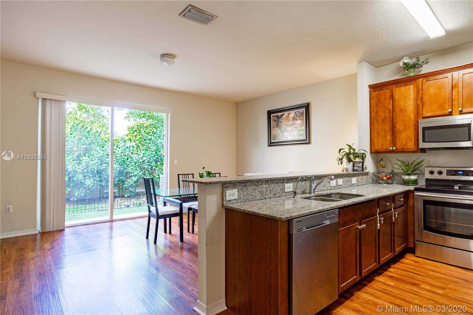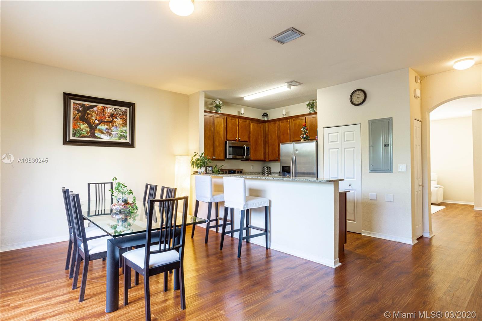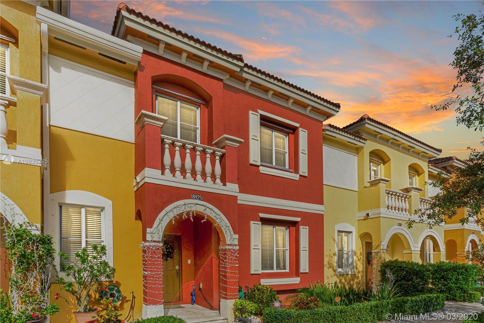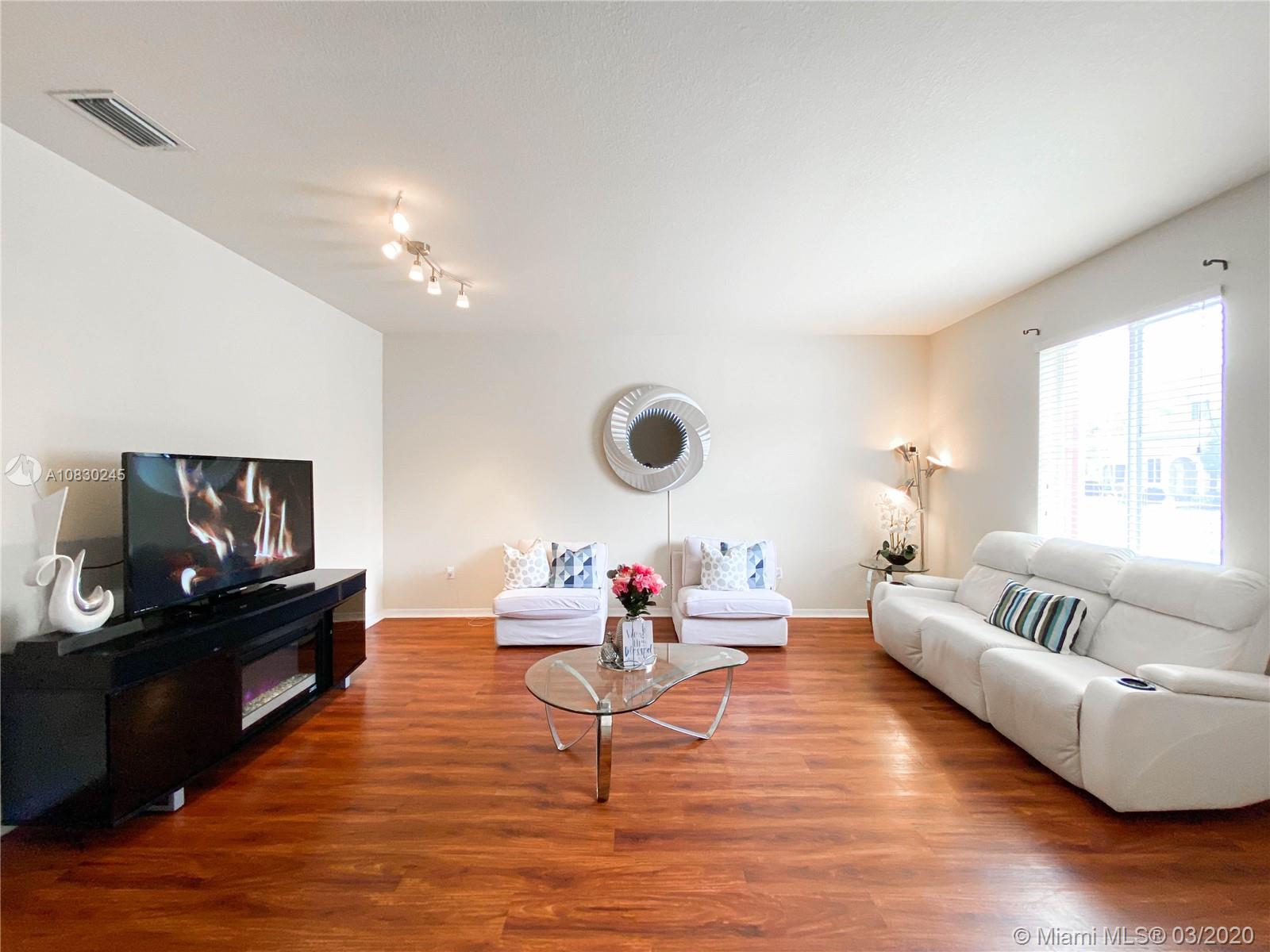 Beautiful and spacious 3 bedroom and 2.5 bathroom townhome located in Miramar. Home features lot of natural light with high ceilings, foyer entry into large living area, open concept kitchen with wood cabinets, granite countertops, like new stainless steal appliances, guest bathroom, family room and backyard area. Upstairs are master suite, master bath and walking closet, office/loft area, full bathroom, two bedrooms, NEST smart thermostat, like new washer and dryer, additional storage is build under staircase. Village Walk is well maintained gated with beautiful club house, pool and children play area. Located close to malls, schools, shopping, expressway. 2 assigned parking spots located at the front entrance. Association covers roof replacement and exterior maintenance. Welcome home!
