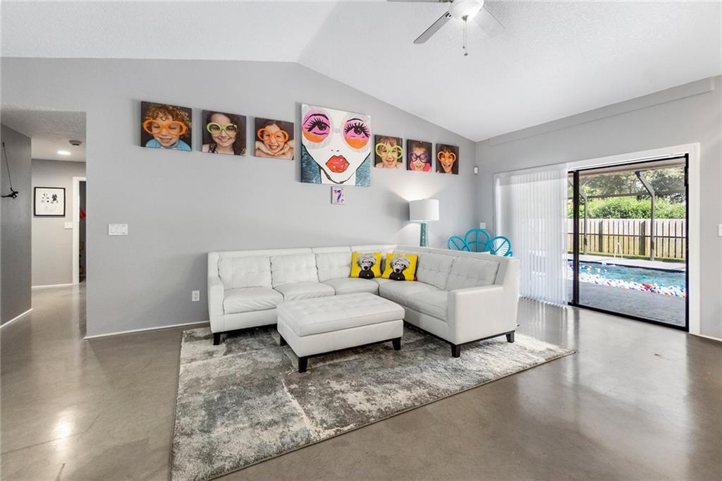 Move in ready!Completely remodeled modern home. Polished concrete floors, new white kitchen with quartzite countertops. Brand new graphite appliances with smart refrigerator. Designer bathroom finishes. Plantation shutters and custom solar shades. Impact etched front door and accordion hurricane shutters throughout. Completely refinished & remodeled pool with fountains and beach step with umbrella stand built in. Travertine decking with new screened enclosure. A/C less then 2 yrs old. Inside laundry room! Community features a pool, tennis courts, pickle ball courts and access to the Ridge! Top school district! Centrally located with easy access to major highways.