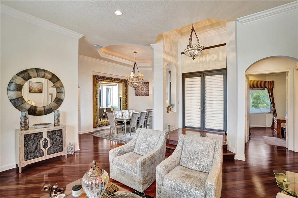 Hawks Landing Waterfront Custom Pool Home With 4 bedrooms + custom office + 3.5 baths. Interior features include upgraded kitchen with granite countertops and wood cabinets, double oven, stainless steel appliances, eat in kitchen area and spacious family room. Huge master suite with sitting area, view of beautiful pool/water views, double walk in closets, and large master bathroom with spa tub and marble flooring. Gorgeous water views, large picture windows, crown molding and beautiful wood flooring. Custom built in office. Exterior features included gated courtyard entry, hurricane accordian shutters, 3 car garage with circular driveway, and exterior lighting. Resort style clubhouse with pool, spa, locker rooms, tennis. Come live the resort lifestyle in Hawks Landing Plantation.