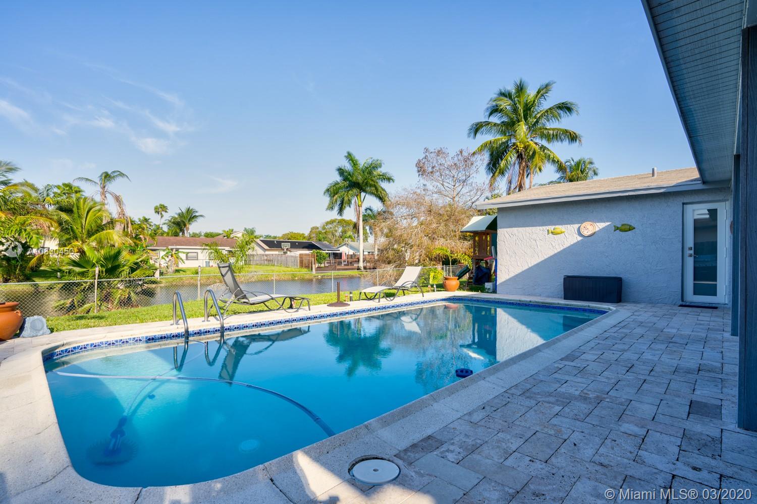 Lovely move in ready 4 bedrooms, 2 bath with a beautiful patio and pool entertainment area. Such a serene view of the canal and so peaceful while you enjoy a barbeque or swim. Beautiful sunsets from this stunning outdoor space. Just painted on the inside and out of the house. New central air con and heat. You can move in immediately no wait. Shops, restaurants and the Broward Outlet Center just a few minutes away. Take the kids or walk the dog to the park a few blocks away. New hurricane windows just painted inside and exterior.
