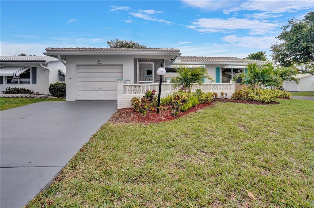 Welcome home to this lovely updated Admiral model on a corner lot! Move in ready two bedroom and two bath home has laminate wood floors in the living and family areas with tile throughout. Updated kitchen with granite countertops, breakfast bar, pantry, and plenty of cabinets. Newer tile roof and AC! Accordion shutters and awnings. Walking distance to two heated pools, hot tubs and tennis courts. Main clubhouse has an auditorium, library, exercise room, card room, billiards room, meeting rooms. HOA covers roof, exterior paint, lawn care, and termite/pest control. Take the courtesy bus to the grocery, pharmacy, and even Sawgrass Mills. Neighborhood is centrally located and near several shopping plazas, restaurants, banks. 30 minutes from Ft Lauderdale Airport.