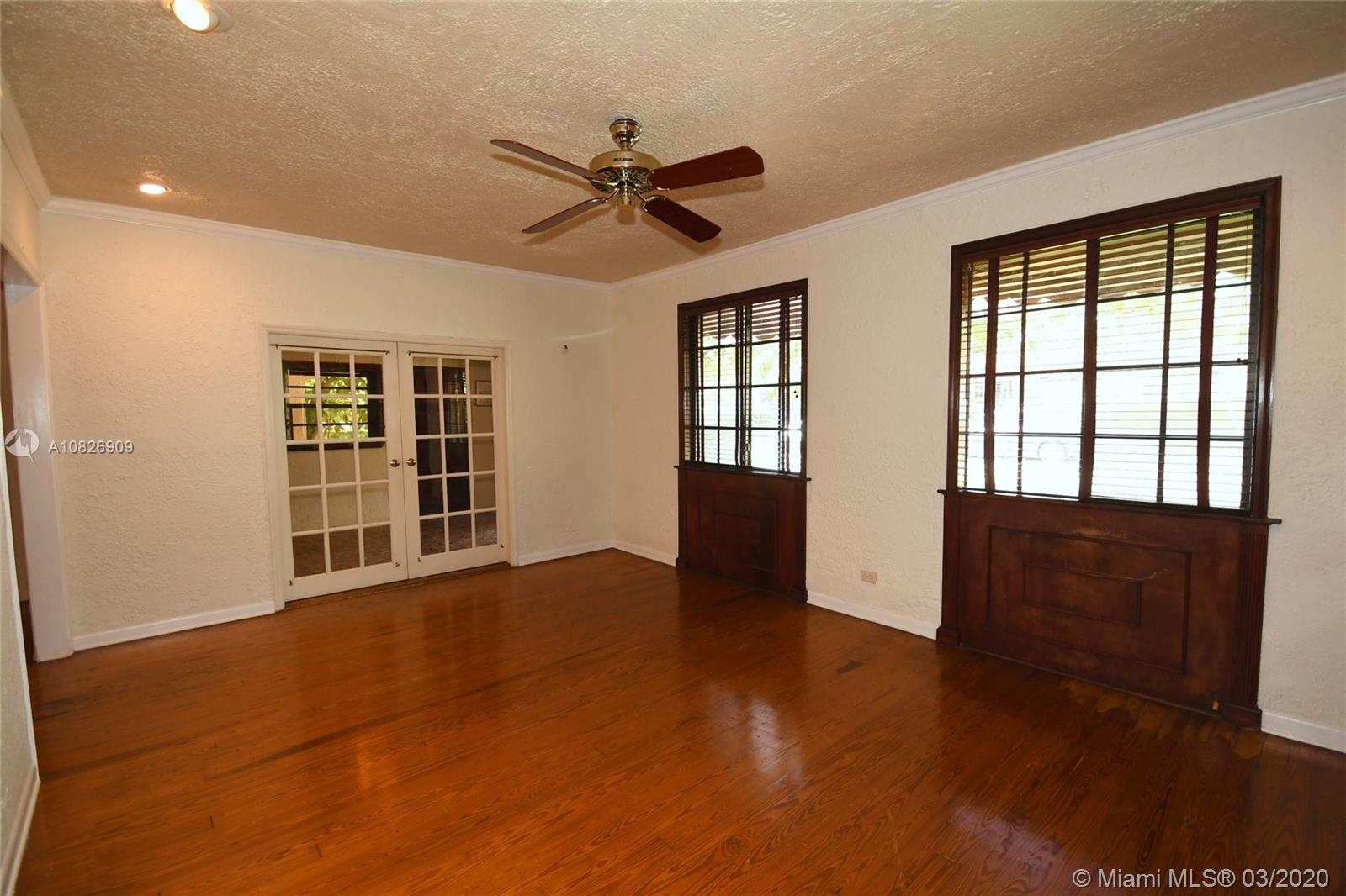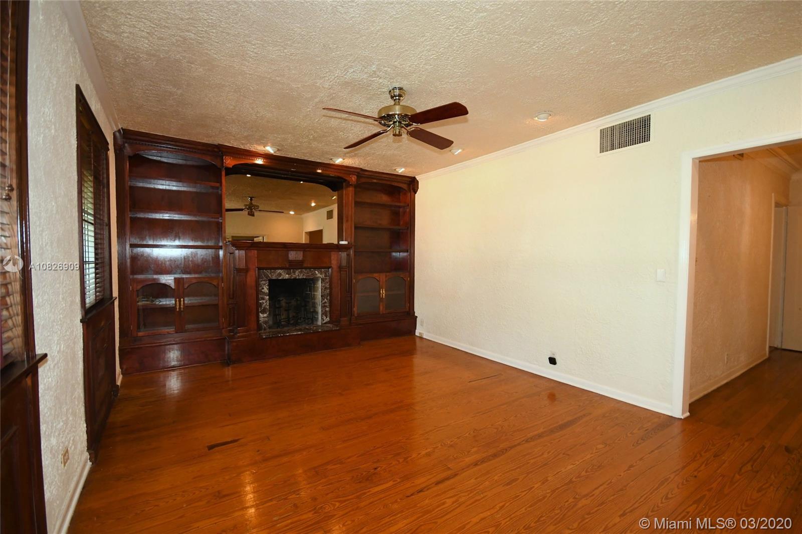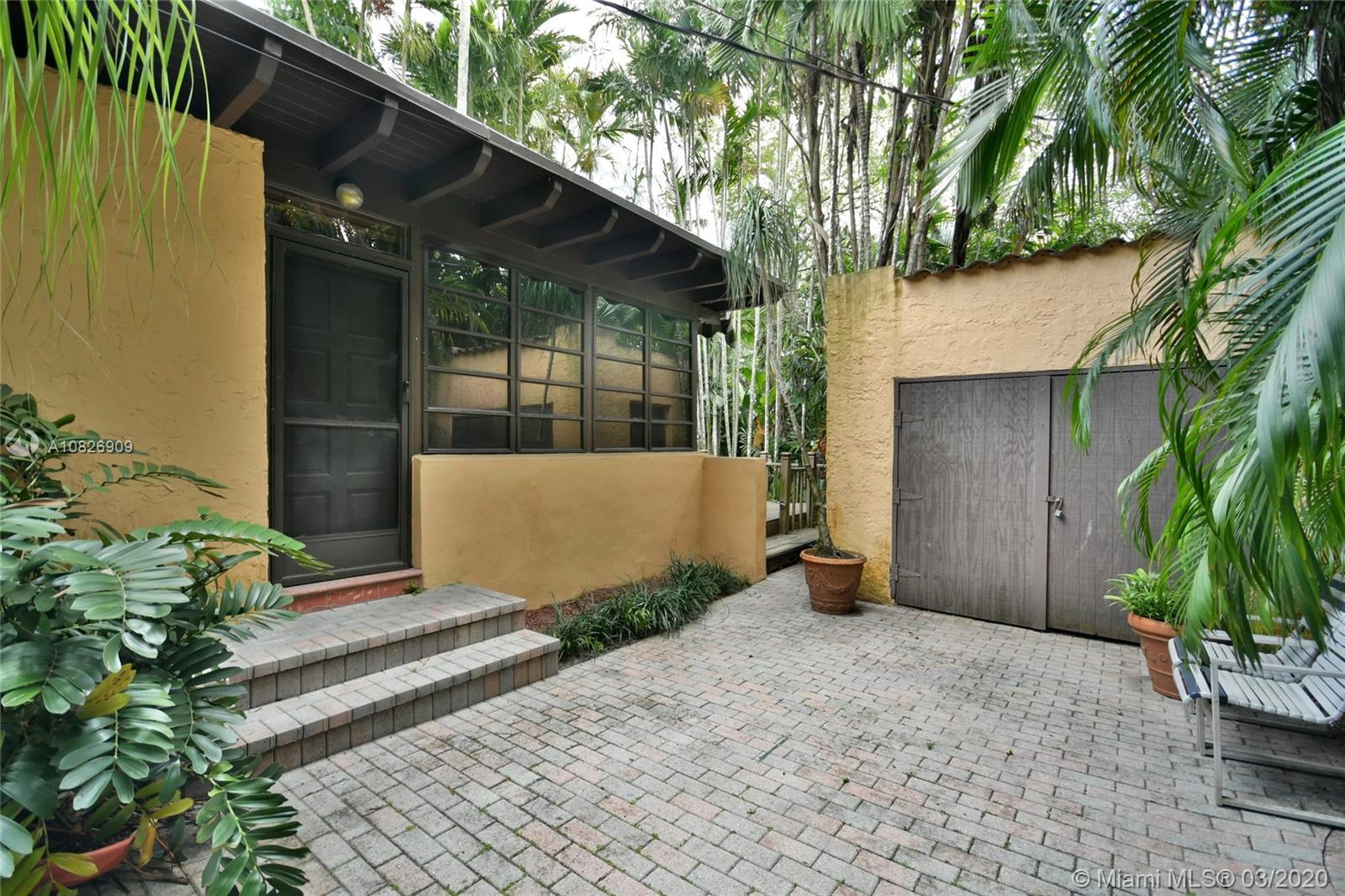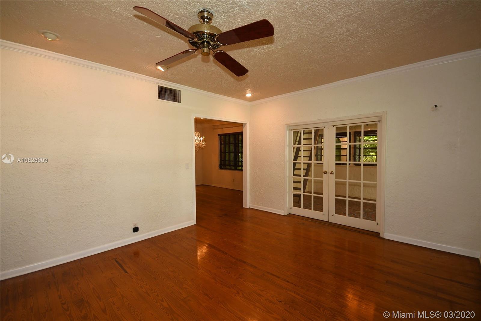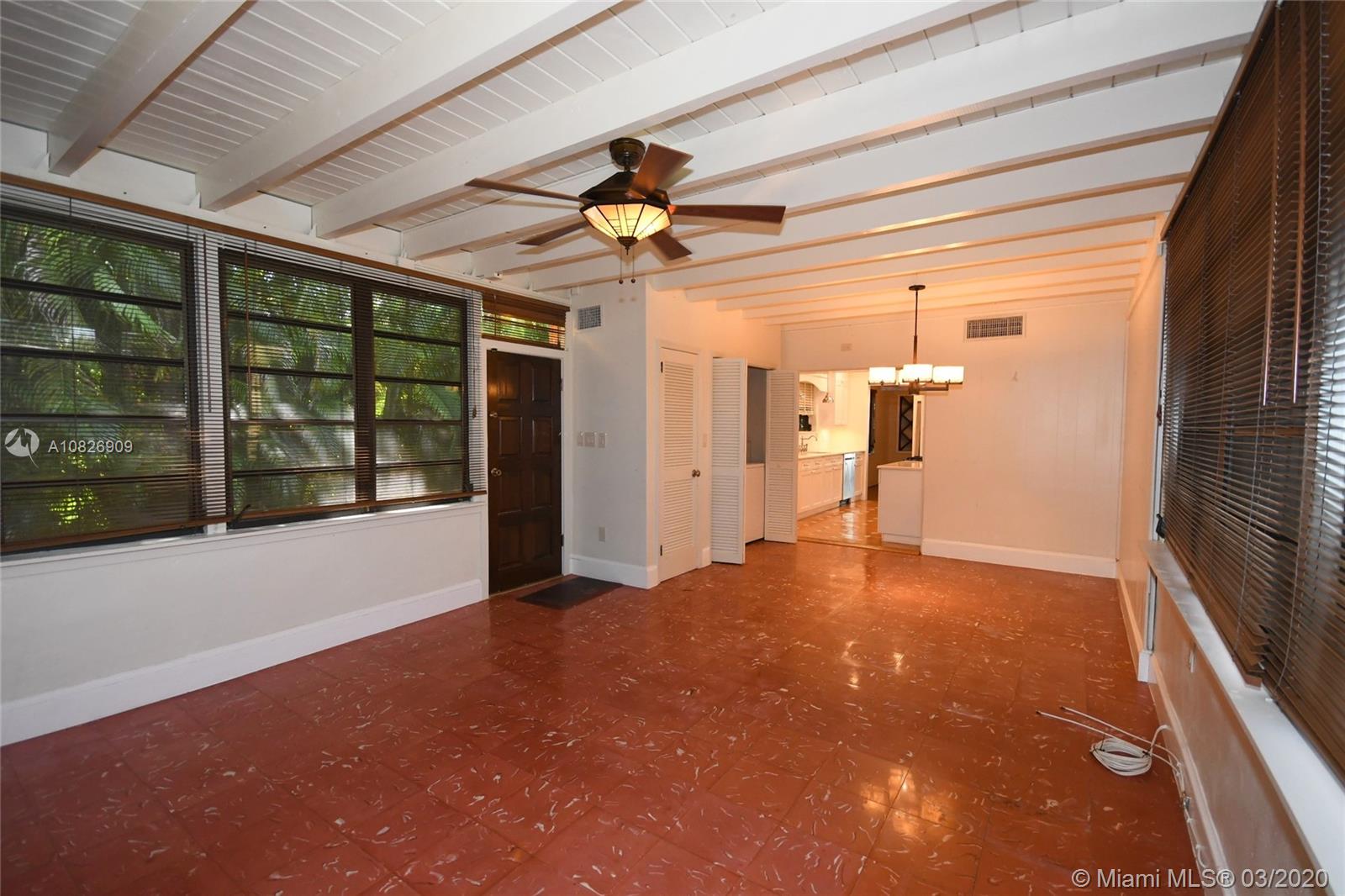 1930 Old Spanish style house full of old-world charm, elegance and ambiance. Located on a tranquil Coral Gables tree-lined street within walking distance to UM. This 2/2 (tax records indicate 3/2) has original tumble stoned floors in the foyer. Loft library with hand-painted mural, formal living room w/ hard wood floors, wood burning fireplace framed by custom made wood book shelves, formal dining room, updated kitchen with stainless steel appliances, large bright family room that leads to a deck and lush tropical garden perfect for entertaining. Covered carport and detached garage which can be turned into an office, art studio or play room. Just perfect if you are just starting off or looking to down-size. 1 Yr. Home warranty. Roof repaired Oct. 2019 w/ 5 yr. warranty.