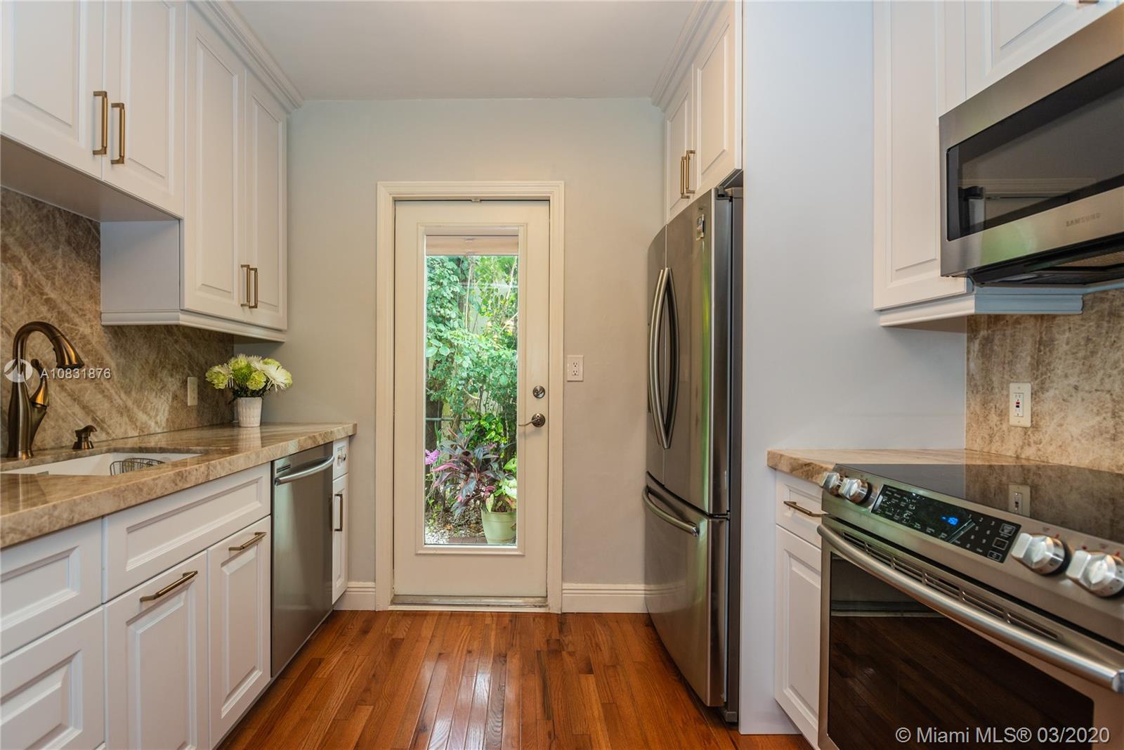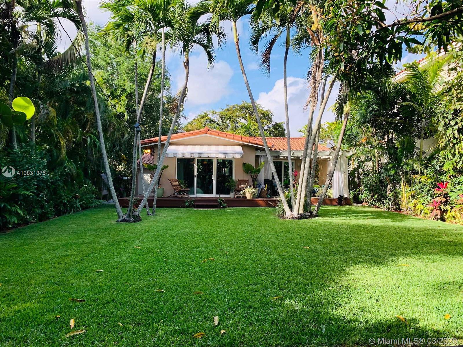 Beautiful Hawaiian garden on rare 7,350 sq ft lot with renovated Coral Gables home. Large Florida room with vaulted ceilings overlooks the tropical fruit garden. Upgrades include remodeled kitchen, new appliances, new impact windows/doors, new instant hot water system, new air-conditioning unit (AHU and A/C), new light/fan fixtures, electrical wiring, plumbing and authentic Chicago Brick driveway. Home also features beautiful hardwood floors and a working fireplace. Home has 2 Bedrooms plus Den, Home Office area and outdoor covered veranda. Lots of room for a pool and/or to extend house.