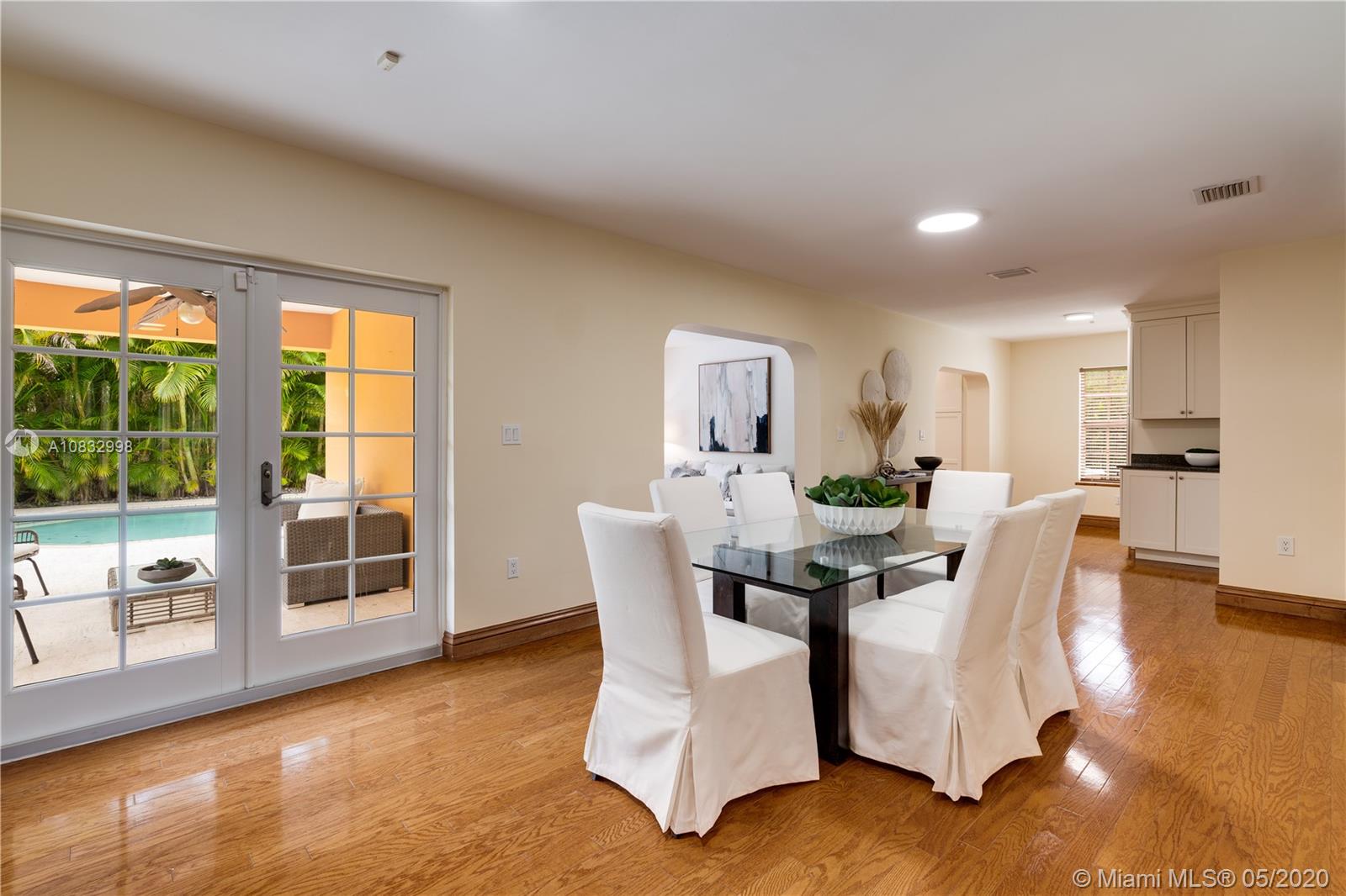 Captivating Coral Gables home on 10,500 lot exudes charm on tree-lined street. Lush landscaping and covered portico welcome you into the formal living room which boasts wood floors, arches, and bar area. The family room, bathed in natural light, is a great spot to unwind. Steps away, you’ll find a quality, remodeled kitchen with custom cabinetry, all stainless steel appliances and Sub Zero refrigerator. Not to be outdone, the master bathroom renovation and custom closet hint at the thoughtful updates made throughout. Make your way outdoors and enjoy the tropical setting of your pool and patio area. Impact windows, newer washer/dryer, and spacious 2-car garage make this move-in ready home a true gem. A Very Special Home.