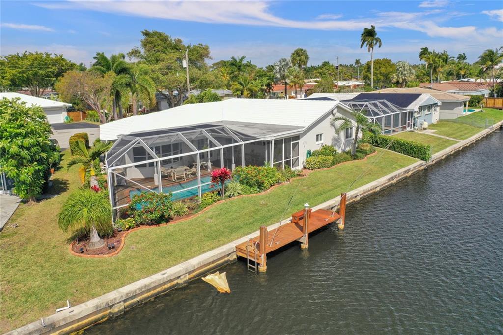 This perfect transitional remodel with 100' of waterfront is one of the largest waterfront homes in prestigious Coral Ridge Isles! Located just one off the point on a quiet cul de sac this 3 bedroom, 2 bath home features a Windowed Eat-In-Kitchen with solid wood cabinets, granite counters & back-splash and stainless steel appliances, a den with a bay window overlooking the sun-splashed pool & canal and a 2 car garage. The recently refinished enclosed heated pool is perfect for effortless year round outdoor entertaining complete with a pass thru to the kitchen! Hurricane impact windows & shuttered doors and neutral tile throughout. Rarely are waterfront homes of this caliber so fairly priced. Come and see for yourself.