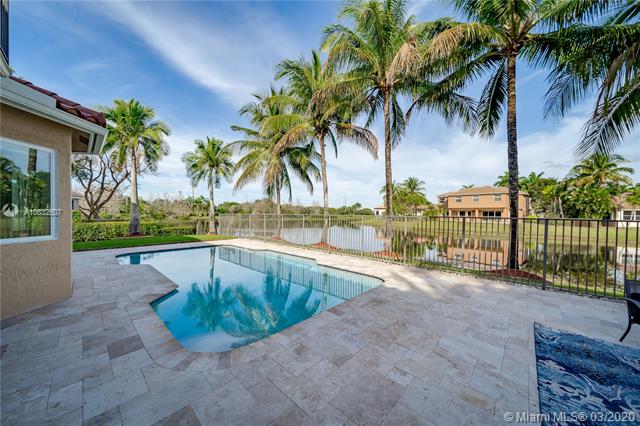 Exquisite home in Weston Hills. Tastefully remodeled. Featuring New Roof New Impact doors and windows, modern stair case, stone wall accents, all new interior doors, walking closets, oversized two car garage with driveway that fits 4 cars, pool with salt chlorination system, cabana bath and a Generator for your peace of mind. Beautiful large backyard, with stunning serene lake view and a balcony perfect to enjoy every sunset. Located on a cul-de-sac. making this the perfect home for a family. Only a two minute walk to the park and great neighbors. Gated community with security patrols. The Country Club offers two of the best golf courses in Broward County and other amenities including, tennis, dining, pool, recreation.