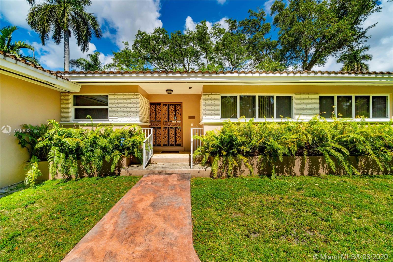 Click on our HD video for a Virtual tour: https://youtu.be/TcEPkSLbxT8 This spacious 1-story home has lots of impact windows for natural light and sits on a beautiful tree-lined street. Features include glistening hardwood floors throughout and open concept living areas with large picture windows to the private backyard. Updates include: newer 2002 wood kitchen cabinets, granite counters & backsplash, 2005 PVC plumbing on east side and replaced hall bathroom including Jacuzzi tub, 2006 replaced master bath and 2012 stamped concrete driveway. Master bedroom 14x13. Second bedroom 14x12. Third bedroom 11x12. Walking distance to Red Bird shopping area and biking distance to UM.