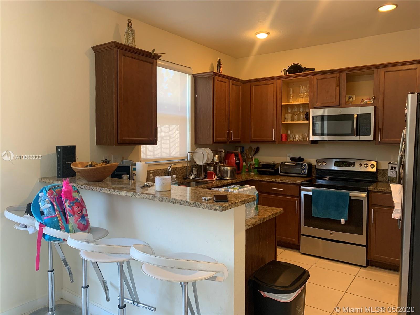 Beautiful townhouse with nice kitchen, stainless steel appliances, tile downstairs and carpet upstairs, fresh painted, washer and dryer large capacity, fenced patio, car garage with paved driveway for 2 cars, excellent condition, low HOA fee. Few steps from guest parking area, excellent location, a + schools, club house, close to everything: shopping centers, malls, Miami intl airport, mayor’s highways, etc… HOA approval req.