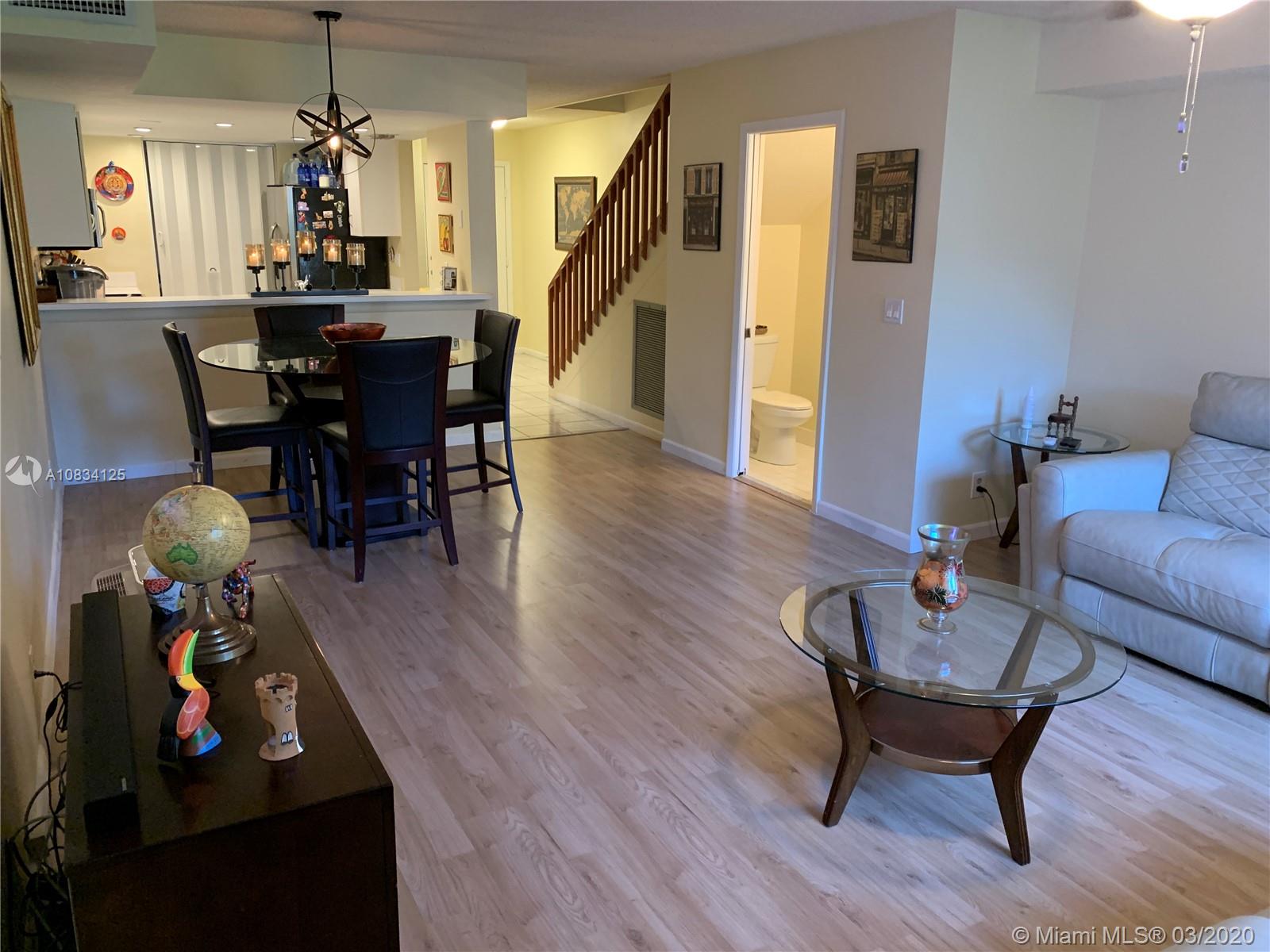 AWESOME TOWNHOME CENTRALLY LOCATED IN DAVIE IS SPACIOUS WITH 2 BED, 2.5 BATHS, LAMINATE TILE FLOORS 1ST LEVEL AND DOUBLE DOORS LEAD TO MASTER SUITE W HIGH CEILINGS - SCREENED IN PATIO OPEN TO GREEN SPACE.