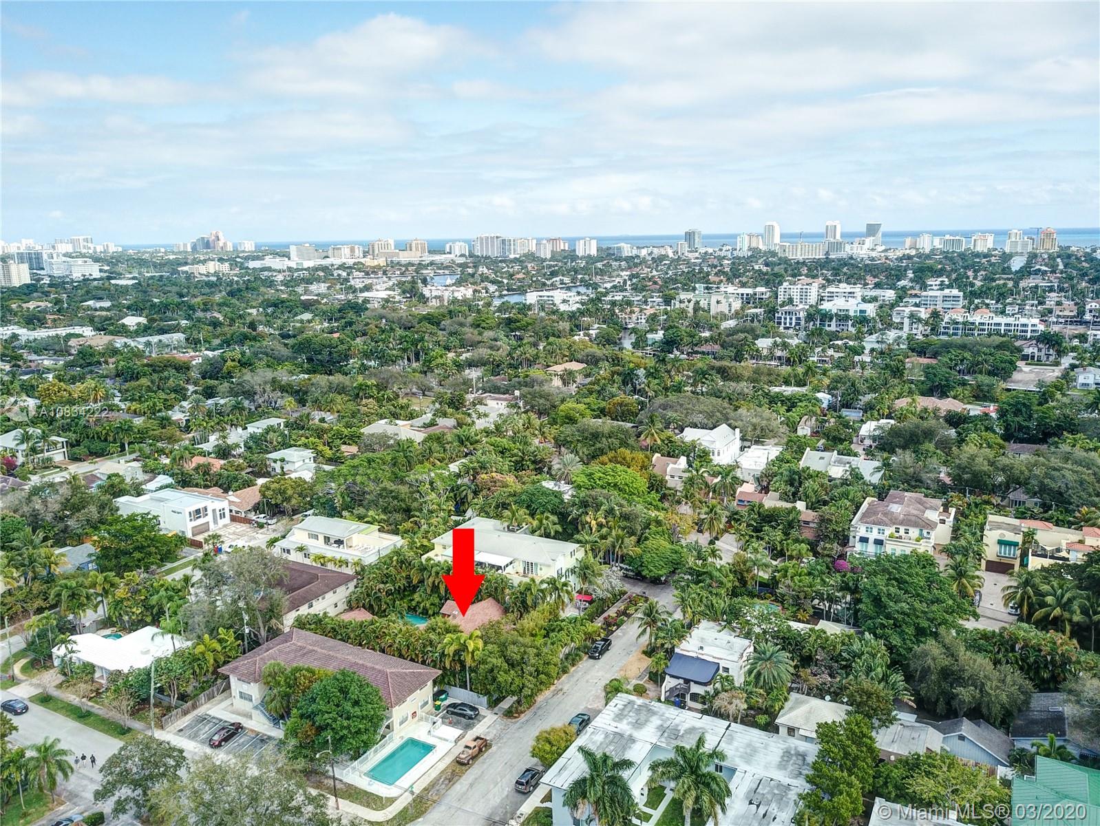 Your own tropical paradise in the heart of the city! 2 bedroom, 1 bath home, tile & hardwood floors, working fireplace, formal dining room, California closets. Stainless steel appliances in main house. Freshly painted. Screened front porch and deck in back (not screened). Heated pool. Guest house has 1 bedroom, 1 bath, kitchen and living room. Can be rental, airbnb, your office, in-law quarters, whatever you would like! Walkable to Las Olas (0.6miles), less than 2 miles to Galleria Mall and 2 miles to Las Olas Beach!